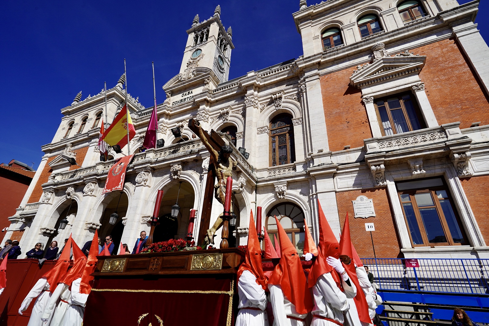 Durante estos días, la presencia internacional se completa con embajadores y diplomáticos de diferentes países. Algunos de ellos han acompañado hoy al alcalde de Valladolid, Óscar Puente, durante el Sermón de las Siete Palabras, celebrado en la Plaza Mayor.