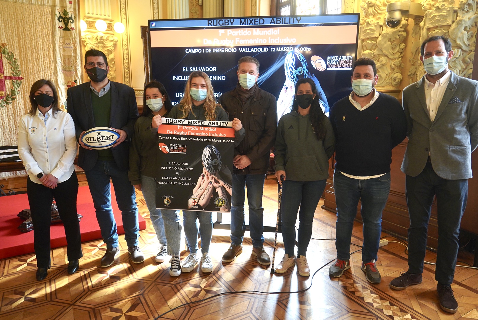 El concejal de Participación Ciudadana y Deportes, Alberto Bustos, acompañado por la vicepresidenta del Club de Rugby El Salvador, María Morán, y varias jugadoras del club, ha presentado el primer torneo de Rugby femenino inclusivo que enfrentará al Club de Rugby El Salvador Inclusivo Femenino y un combinado de URA Clan Almería e Industriales Incluindus de Madrid en el Campo 1 de Pepe Rojo a partir de las 16:00 h.