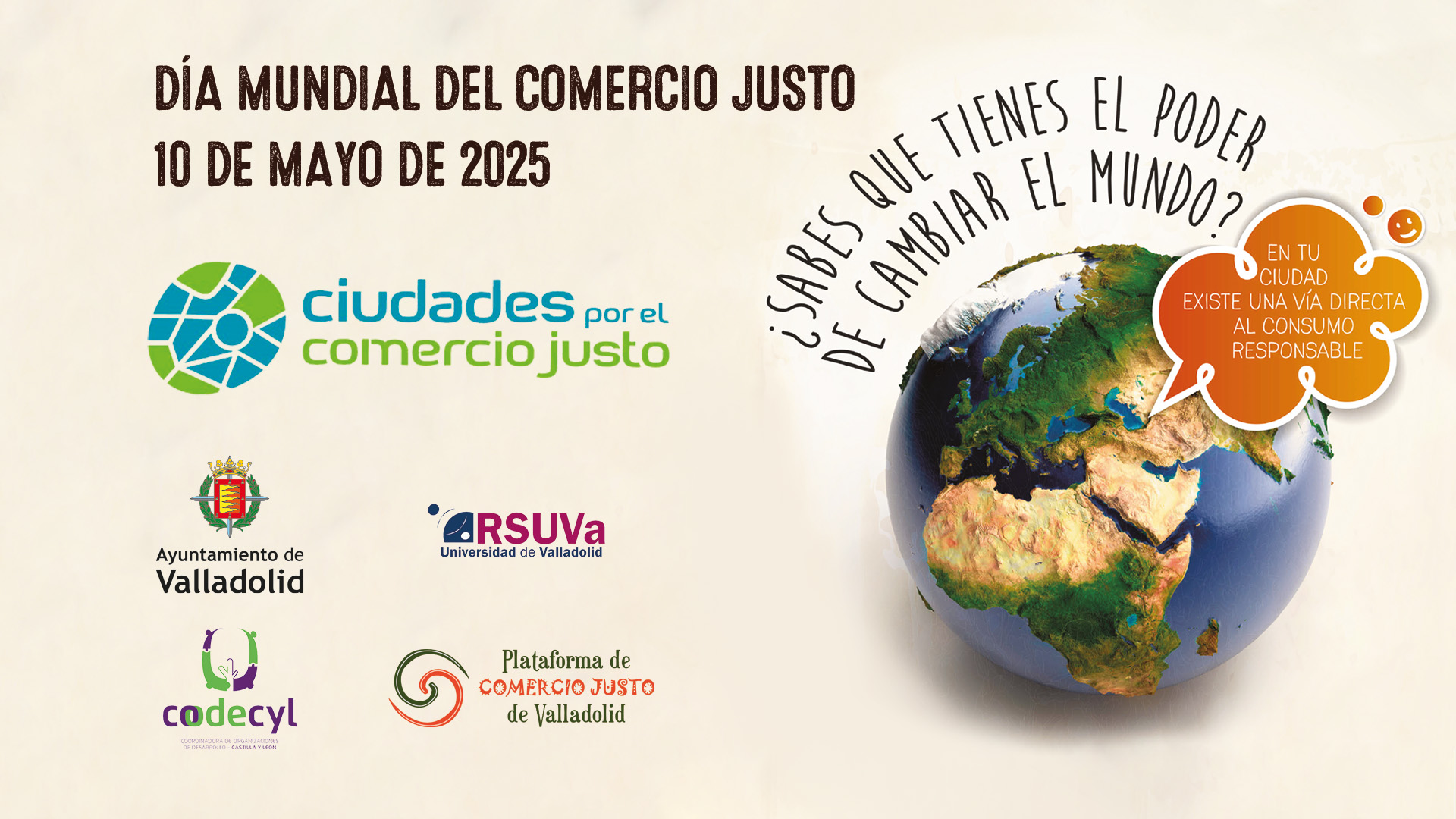 El Ayuntamiento de Valladolid, a través de la Concejalía de Personas Mayores, Familia y Servicios Sociales, se suma un año más a la celebración del Día Mundial del Comercio Justo con un programa de actividades orientadas a sensibilizar a diversos colectivos sobre la importancia de un modelo económico más justo, sostenible y respetuoso con los derechos humanos.