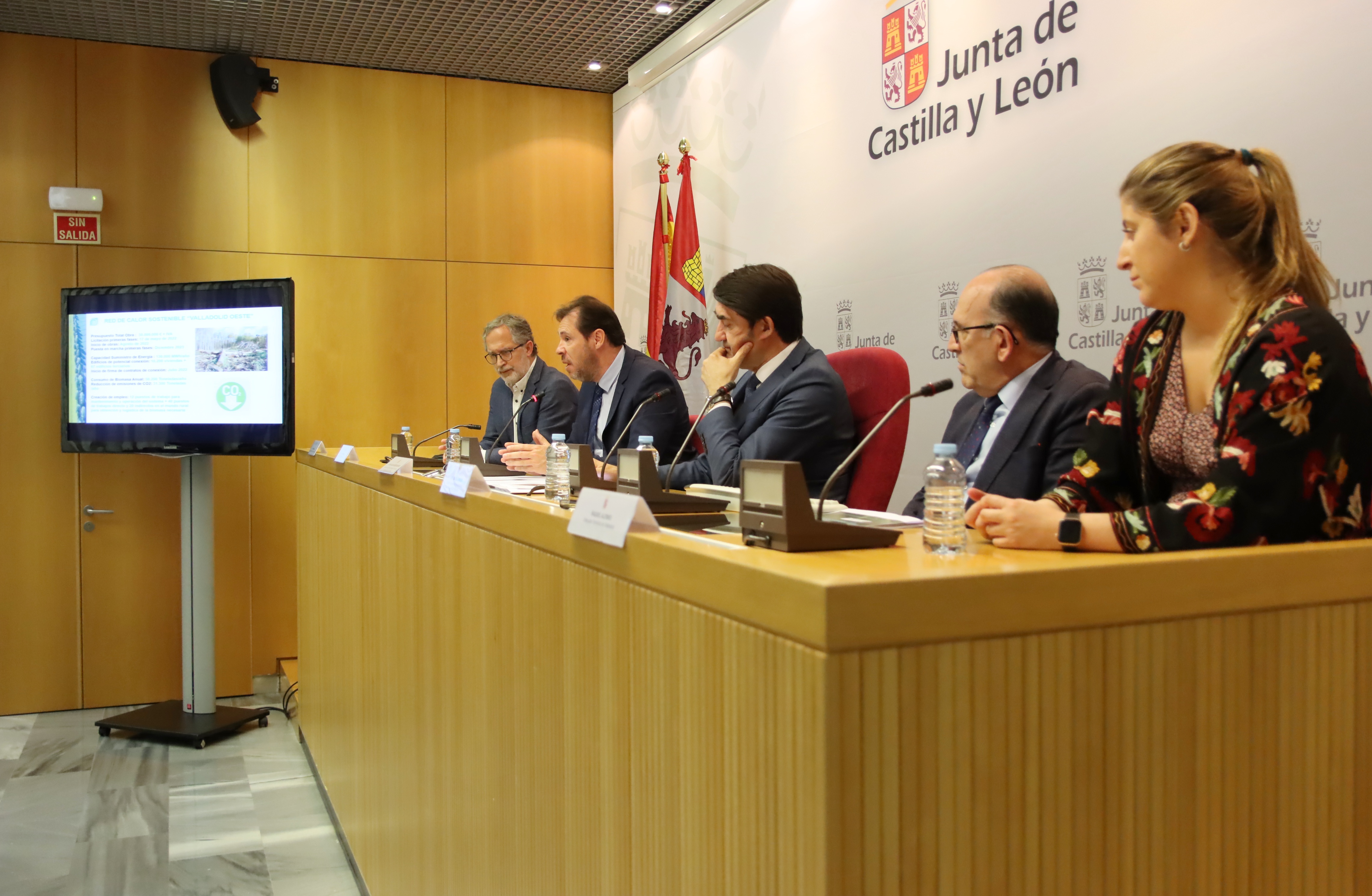 La colaboración entre la Junta de Castilla y León y el Ayuntamiento de Valladolid permitirá la puesta en marcha de una nueva red de calor por biomasa para 30.000 habitantes de los barrios de Parquesol, villa de Prado y Huerta del Rey. El consejero de Medio Ambiente, Vivienda y Ordenación del Territorio, Juan Carlos Suárez-Quiñones, acompañado por el alcalde de Valladolid, Oscar Puente; el director general de Infraestructuras y Sostenibilidad Ambiental, José Manuel Jiménez, y el concejal de Planeamiento Urbanístico y Vivienda de Valladolid, Manuel Saravia-, ha presentado el proyecto de Red de Calor Sostenible ‘Valladolid Oeste’, cuyas primeras obras saldrán a licitación mañana, 17 de mayo, y su puesta en servicio está prevista para la temporada de calefacción 2023-2024.