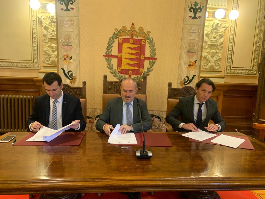 El concejal de Salud Pública y Seguridad Ciudadana del Ayuntamiento de Valladolid, Alberto Cuadrado Toquero, y el alcalde de Medina del Rioseco, David Esteban, han suscrito en el día de hoy un convenio de colaboración, en virtud del cual la policía local de este municipio de la provincia podrá formarse en la Academia de Policía de Valladolid.
