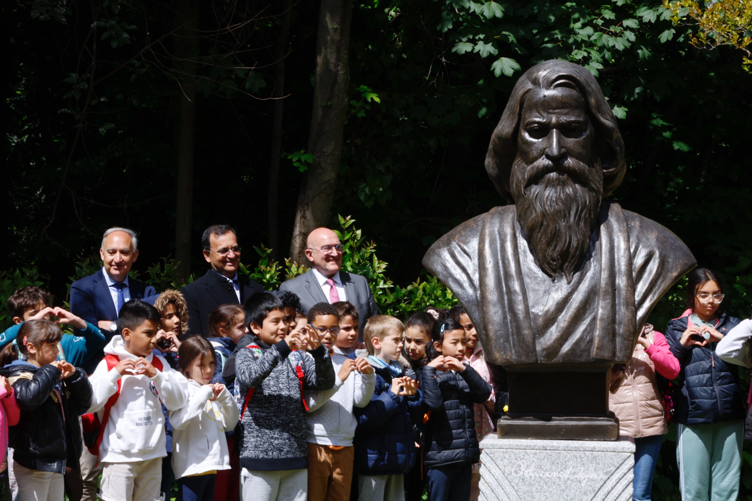 El alcalde de Valladolid, Jesús Julio Carnero, ha inaugurado hoy en el Campo Grande, junto al embajador de la India, Dinesh K. Patnaik, el director de Casa de la India, Guillermo Rodríguez, y el rector de la UVA, Antonio Largo, una escultura del poeta bengalí Rabindranath Tagore (1861-1941), el primer Premio Nobel de Literatura no europeo, que compartirá espacio con otros ilustres escritores de las letras vallisoletanas y españolas. La figura ha sido donada a la ciudad de Valladolid por el ICCR (Consejo Indio de Relaciones Culturales) del Ministerio de Asuntos Exteriores del Gobierno de la India.
