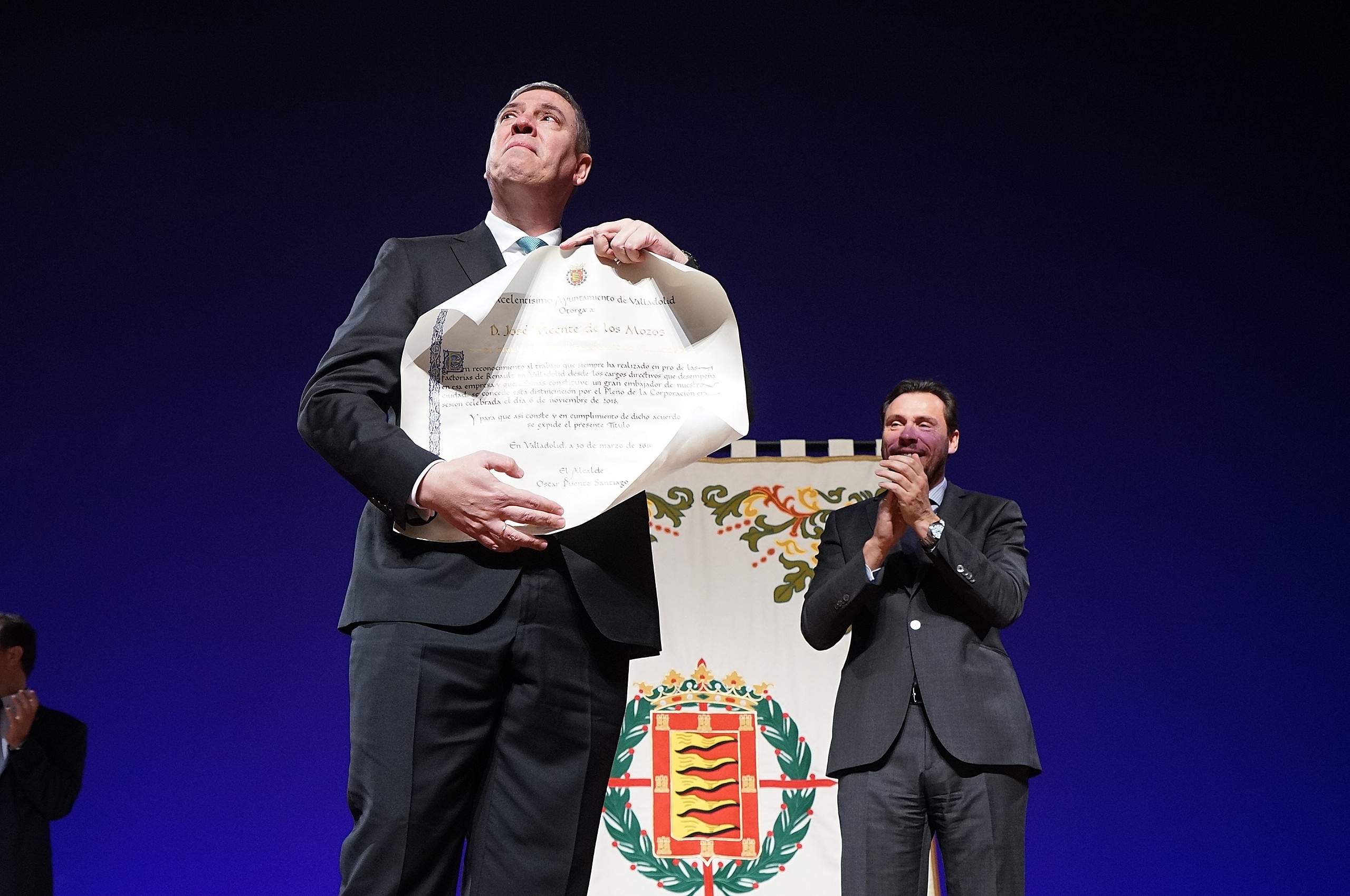El Teatro Calderón de Valladolid ha acogido hoy un acto presidido por el alcalde, Óscar Puente, al que ha acompañado el Equipo de Gobierno Municipal, en el que Renault ha recibido la Medalla de Oro de la Ciudad y el presidente de Renault España ha sido nombrado Hijo Predilecto de Valladolid.