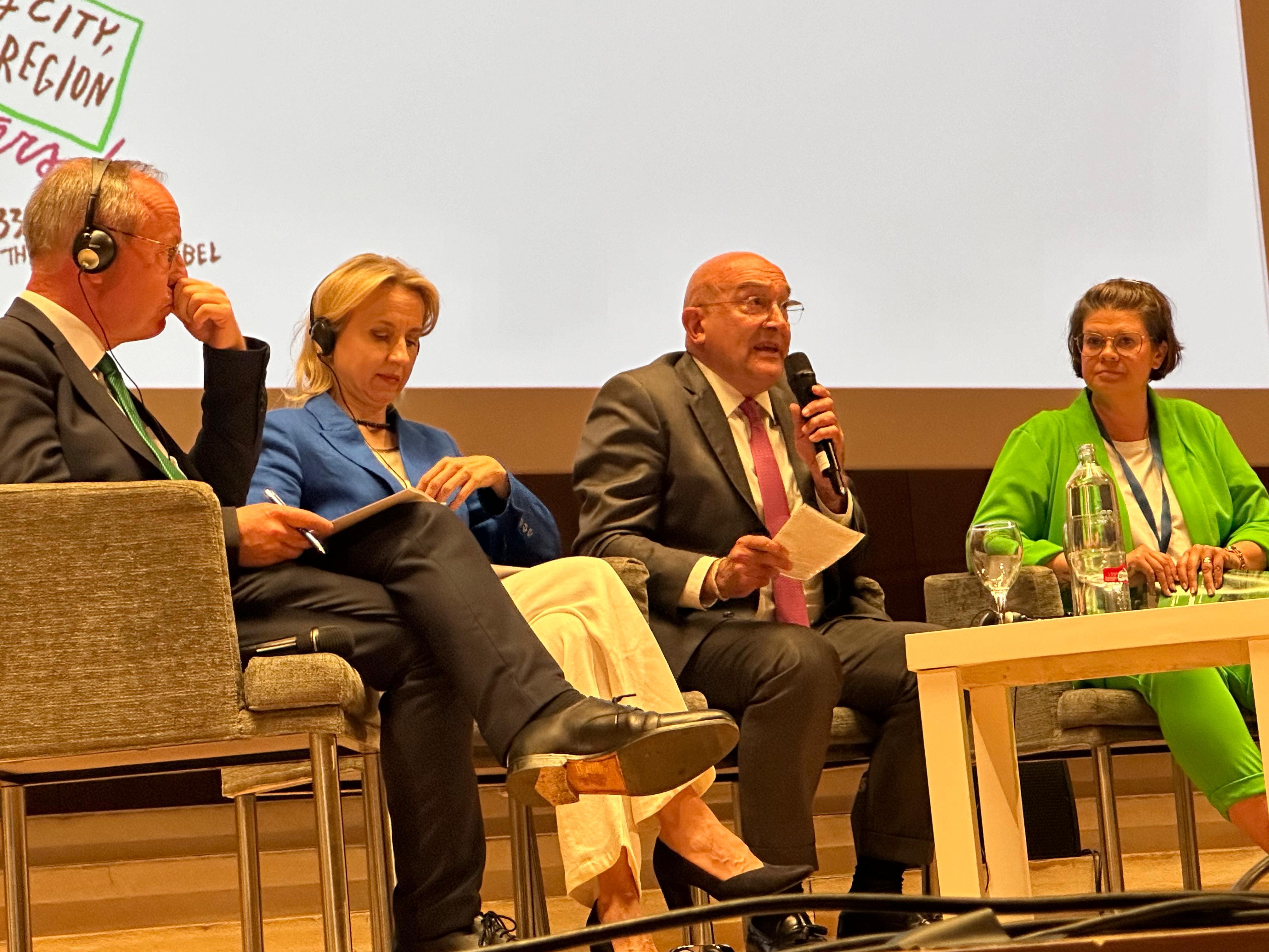 El alcalde ha compartido en el encuentro nuevas iniciativas de sostenibilidad transformadoras de la ciudad: "Estamos trabajando en un proyecto del Rio Pisuerga a su paso por Valladolid, se pretende - a la vez que se combaten desafíos ambientales críticos (intensificación de episodios de inundaciones, sequias, olas de calor,…) - integrar el espacio del Rio en la ciudad, generando nuevas posibilidades de ocio y uso público en la zona del río, promoviendo la conectividad entre espacios urbanos y corredores verdes y azules, pero llevando a cabo las acciones necesarias para mejorar, proteger y conservar la biodiversidad".