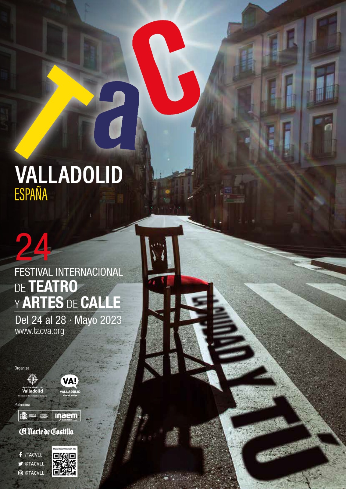 El Festival Internacional de Teatro y Artes de Calle de Valladolid (TAC) celebrará su 24ª edición del 24 al 28 de mayo bajo el lema ‘La ciudad y tú’ y pretende poner el valor la relación de la ciudad y los espacios urbanos con el espectador, independientemente del rol que represente: la acción, la observación, la diversión, la conmoción, la emoción o la reflexión individual.