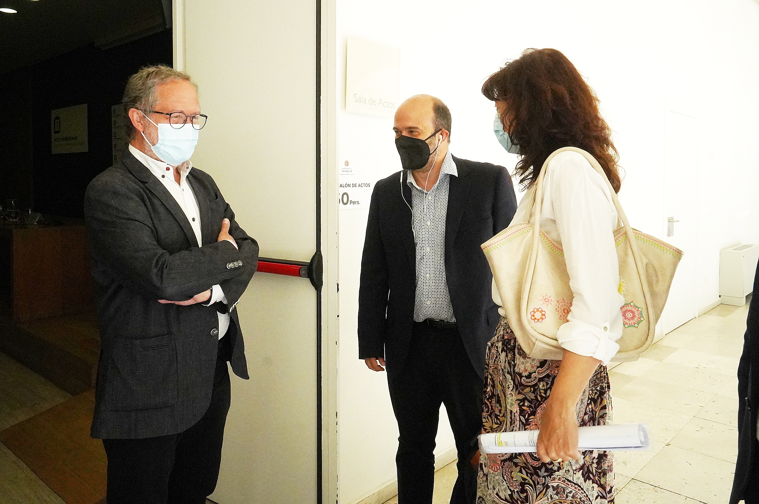 Los concejales han estado acompañados en la presentación de uno de los comisarios de la muestra, Óscar Miguel Ares y del director del Museo Patio Herreriano, Javier Hontoria.