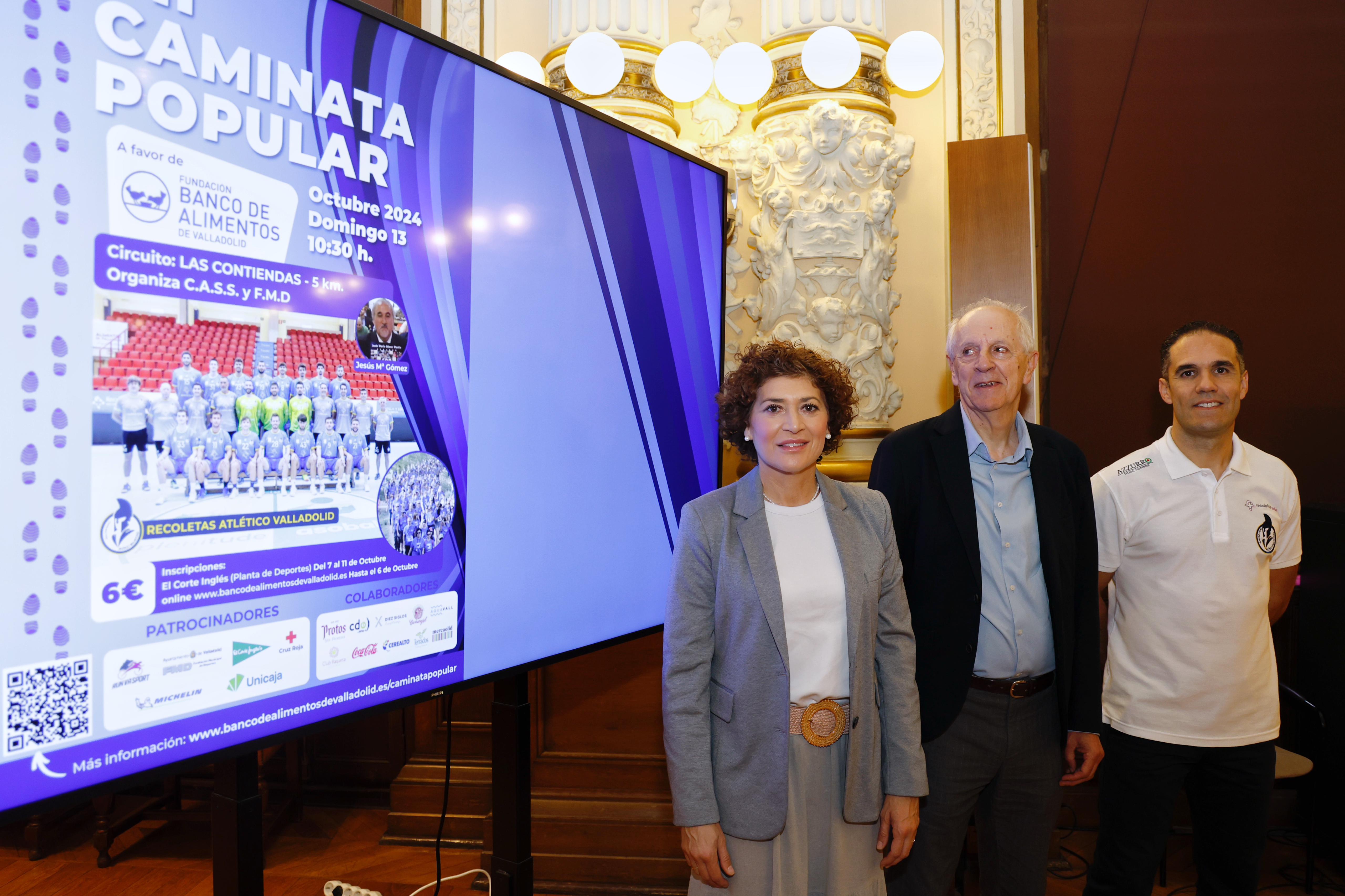 La concejala de Participación Ciudadana y Deportes, Mayte Martínez, ha presentado la VII Caminata Popular, que organizan el Club Sprint Sport y la Fundación Municipal de Deportes del Ayuntamiento de Valladolid, a favor de la Fundación Banco de Alimentos. En el acto, Martínez ha estado acompañada por el vicepresidente del Banco de Alimentos de Valladolid, Tomás Pérez Pinto, y por el presidente del Recoletas Atlético Valladolid, Mario Arranz.
