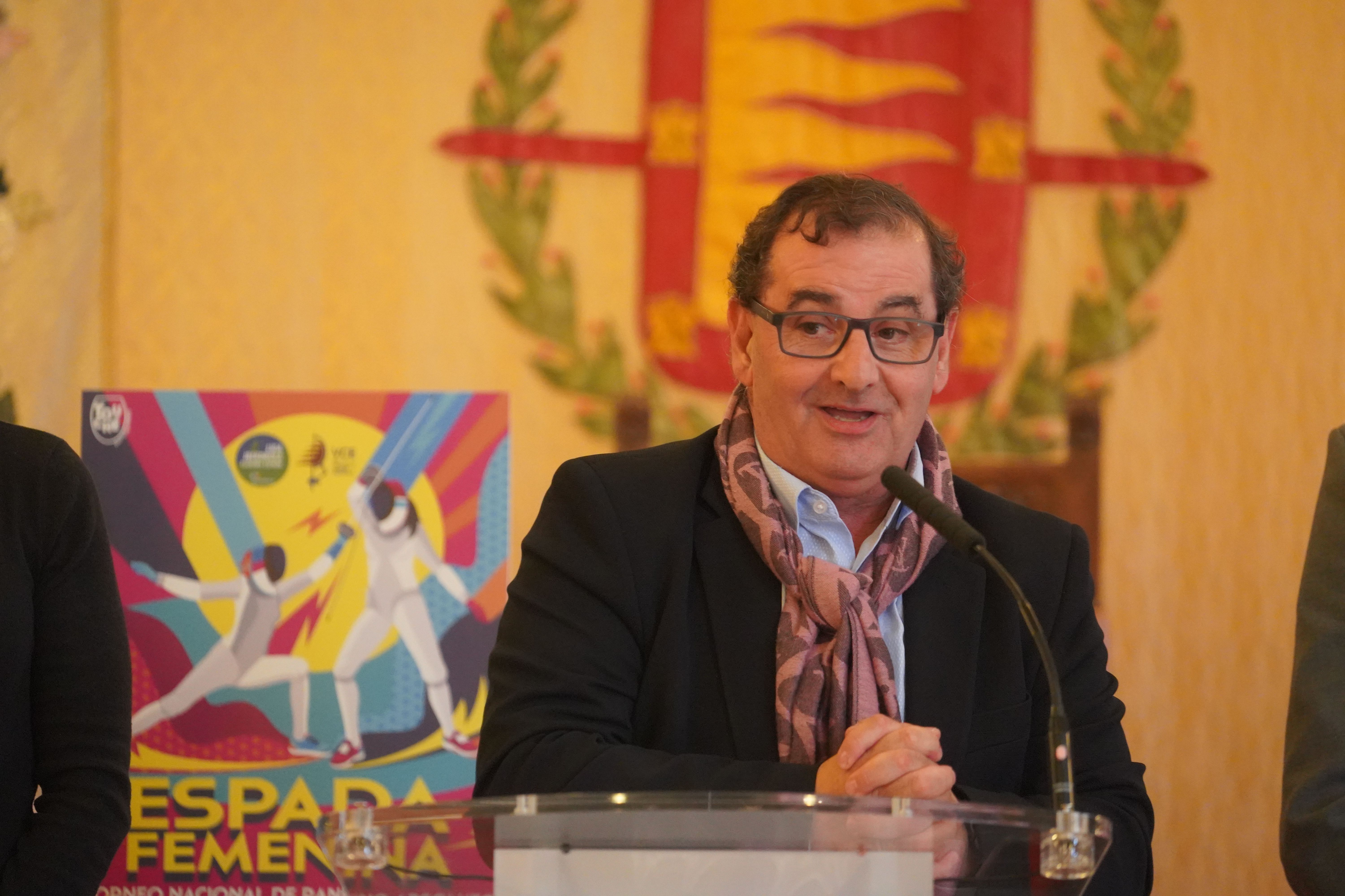 La concejala de Participación Ciudadana y Deportes, Mayte Martínez, acompañada por el presidente de la Federación de Esgrima de Castilla y León, Daniel Bravo, y el presidente del Valladolid Club de Esgrima VCE, Rubén Álvarez, ha presentado hoy en el Salón de Recepciones del Ayuntamiento el X Torneo Nacional de Espada Femenina, que se celebrará en el Polideportivo Barrio Delicias de Valladolid el próximo fin de semana, días 18 y 19 de noviembre. Al acto también han asistido el diputado de Deportes y Juventud, Javier González, y Narciso Prieto, director de Comunicación de Caja Rural de Zamora, patrocinador principal del evento.