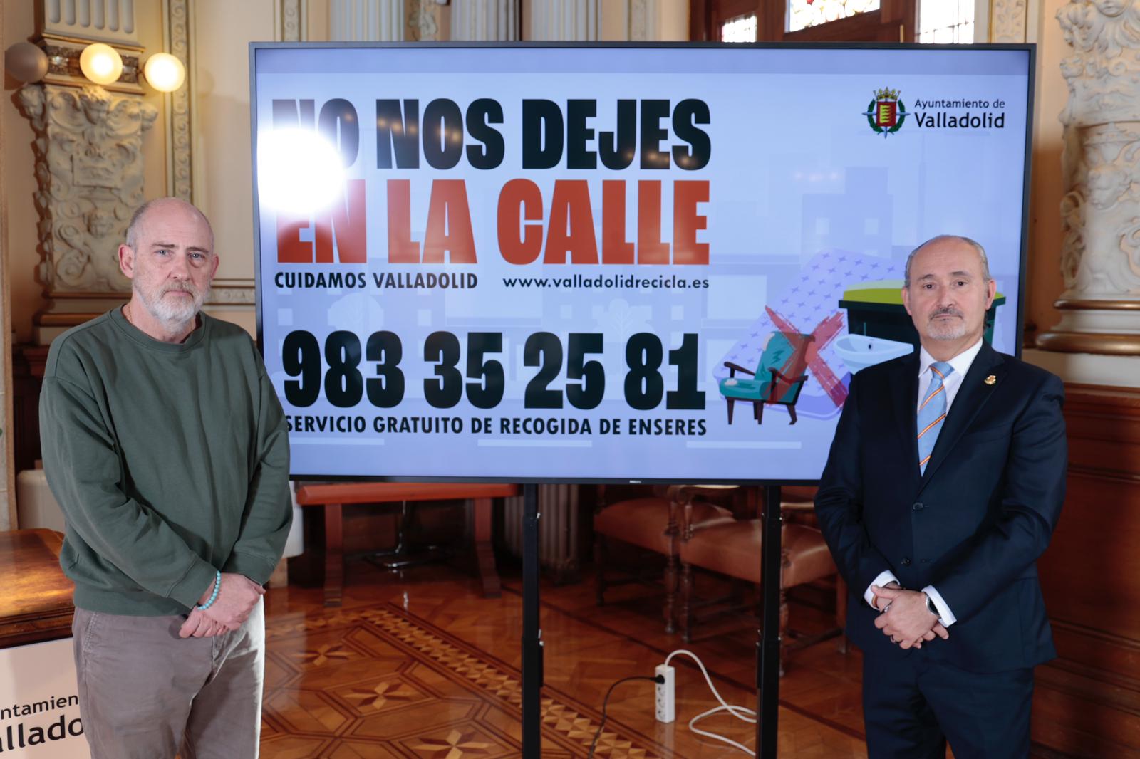El concejal de Salud Pública y Seguridad Ciudadana, Alberto Cuadrado, ha presentado hoy la campaña ‘No nos dejes en la calle’, que tiene como objetivo informar y concienciar a la ciudadanía sobre la importancia de hacer un uso adecuado del servicio gratuito de recogida de enseres que el Ayuntamiento de Valladolid pone a disposición de los vallisoletanos, con el propósito de que aquellos procedentes de los domicilios no sean abandonados en la vía pública o junto a los contenedores de otras fracciones.