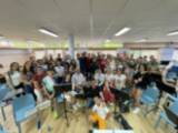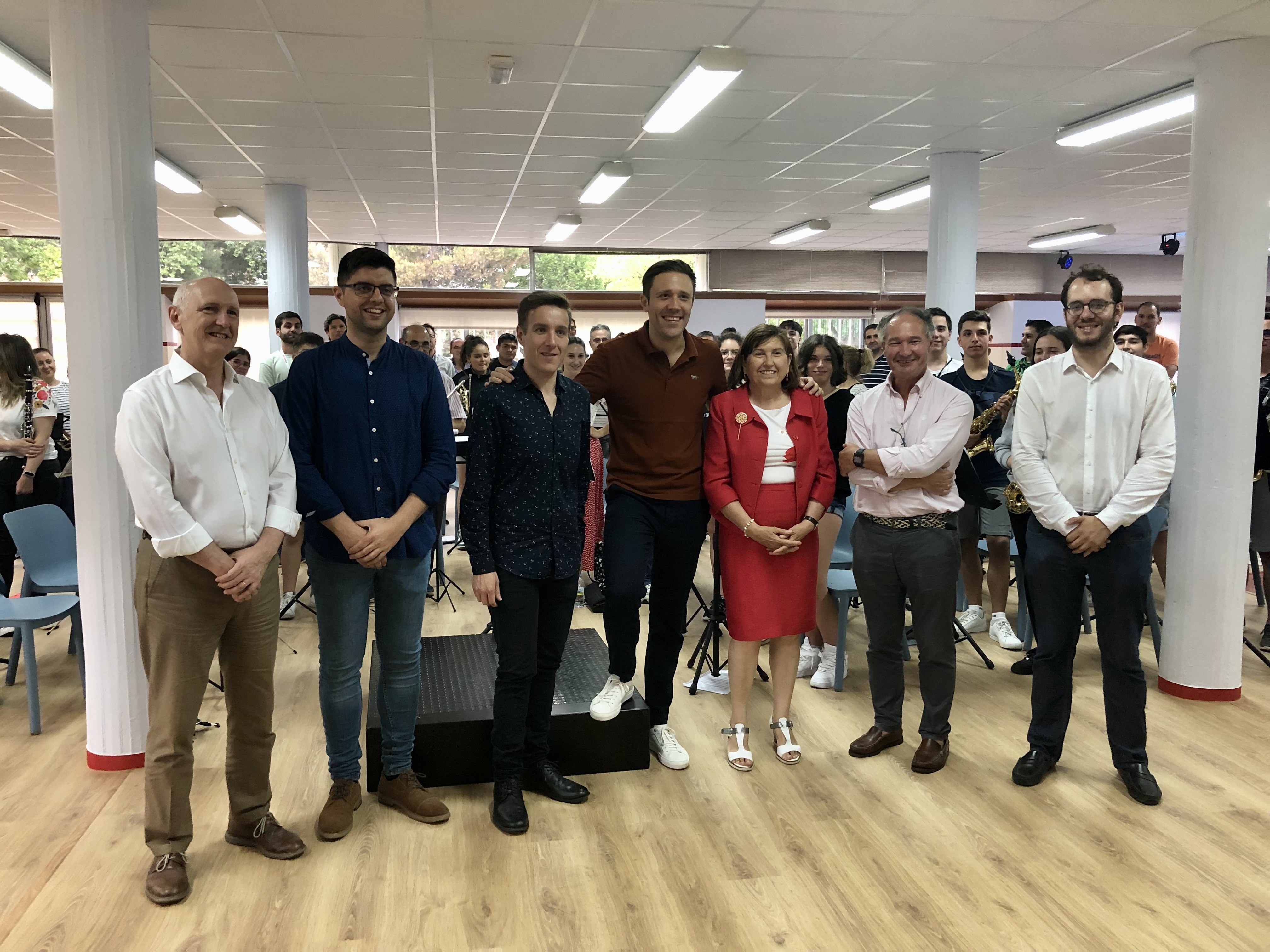 En esta segunda ubicación, es donde se encuentra la nueva sala de ensayo de la Banda, donde se ha celebrado un encuentro con sus componentes que han tenido oportunidad de compartir experiencias y ensayo con Roberto González - Monjas.
