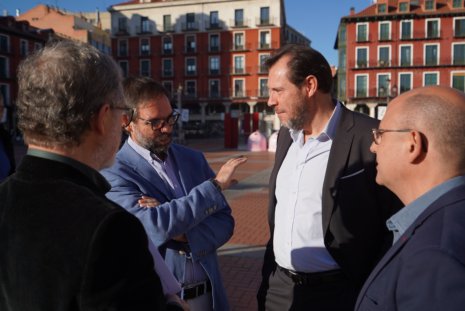 "Los ciudadanos de Valladolid tienen motivos para sentirse orgullosos de esta Plaza y lo que ocurre en ella". Así ha comenzado el alcalde, Óscar Puente, su intervención ante los periodistas convocados junto a la estatua del Conde Ansúrez. Tras recordar que el espacio es íntegramente peatonal tras la decisión del Ayuntamiento de construir fuera de la Plaza Mayor el acceso y la salida del estacionamiento subterráneo, el alcalde ha dado a conocer el balance junto al concejal de Movilidad y Espacio Urbano, Luis Vélez, y el concejal de Planeamiento Urbanístico y Vivienda, Manuel Saravia.