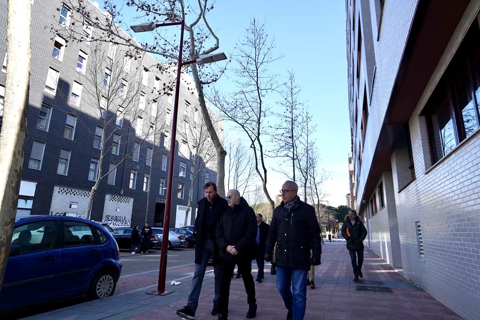 Eficiencia energética y mejor alumbrado público. Esta es la premisa que tiene el Ayuntamiento de Valladolid en la nueva iluminación de los barrios y que tiene su prueba más reciente en Villa de Prado, donde se han instalado 294 luminarias LED con un mínimo consumo energético y, además, se han colocado 127 columnas. Esta inversión de 329.000 euros atiende la demanda de los vecinos y por eso en la visita que han realizado al barrio el alcalde, Óscar Puente, y el concejal de Movilidad y Espacio Urbano, Luis Vélez, han estado acompañados por representantes de la Asociación Vecinal "Villa de Prado".