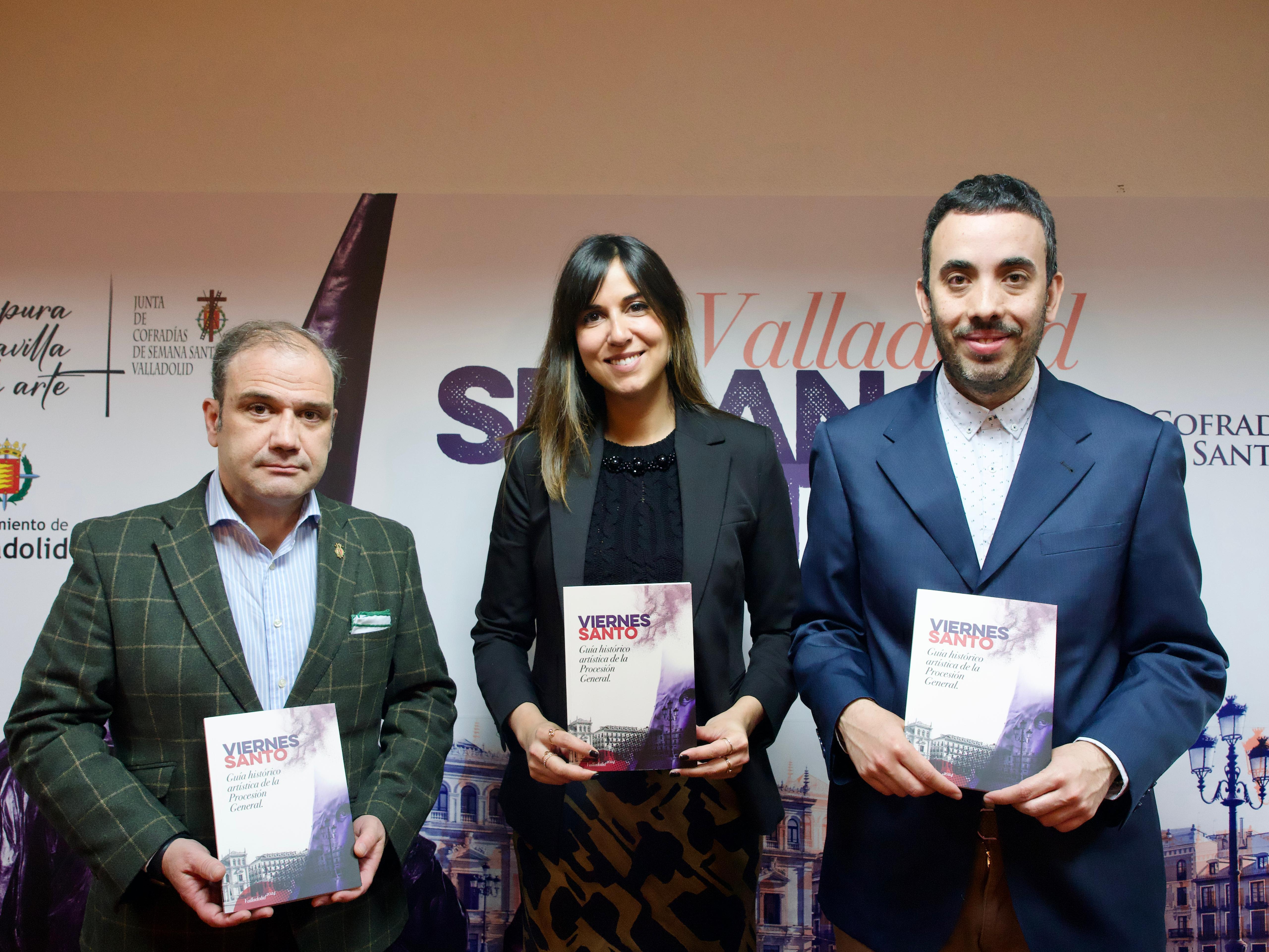 La concejala de Turismo, Eventos y Marca Ciudad, Blanca Jiménez, y el presidente de la Junta de Cofradías de Semana Santa de Valladolid, Miguel Vegas, han presentado una nueva edición de la guía procesional del ‘Viernes Santo’, un documento que detalla el recorrido y los pasos de la Procesión General de la Sagrada Pasión del Redentor.
