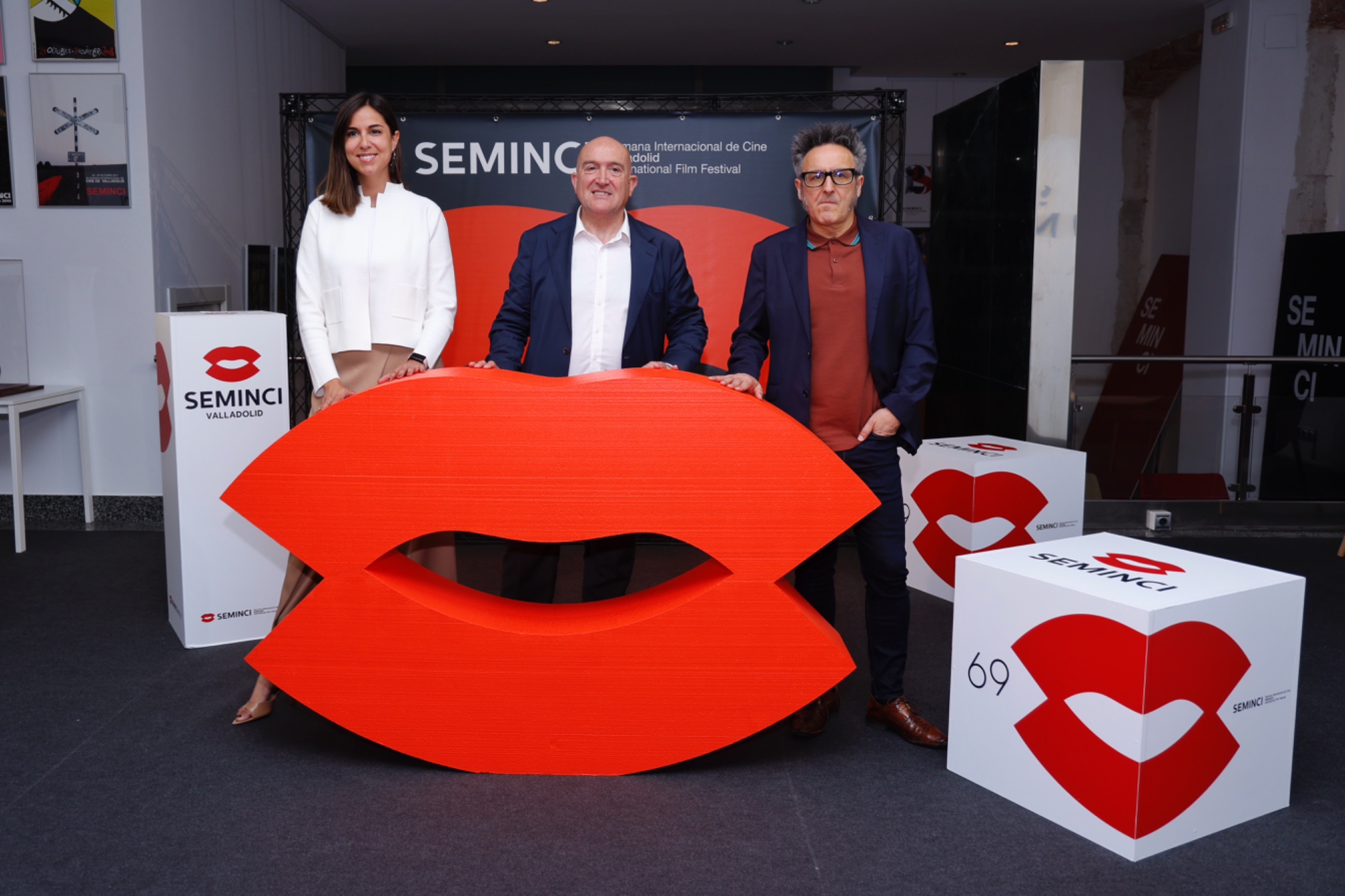 El beso del celuloide, logotipo de estética pop diseñado por el pintor Manuel Sierra en 1984 por encargo del director Fernando Lara, supuso en su momento un cambio radical en la imagen del festival, rompiendo con su imagen conservadora. Tanto el icono de los labios como el acrónimo SEMINCI forman una marca con un valor consolidado por el tiempo y por su vinculación al festival y a la ciudad, de ahí que el proceso de renovación se haya basado en mejorar la identidad, no en cambiarla.