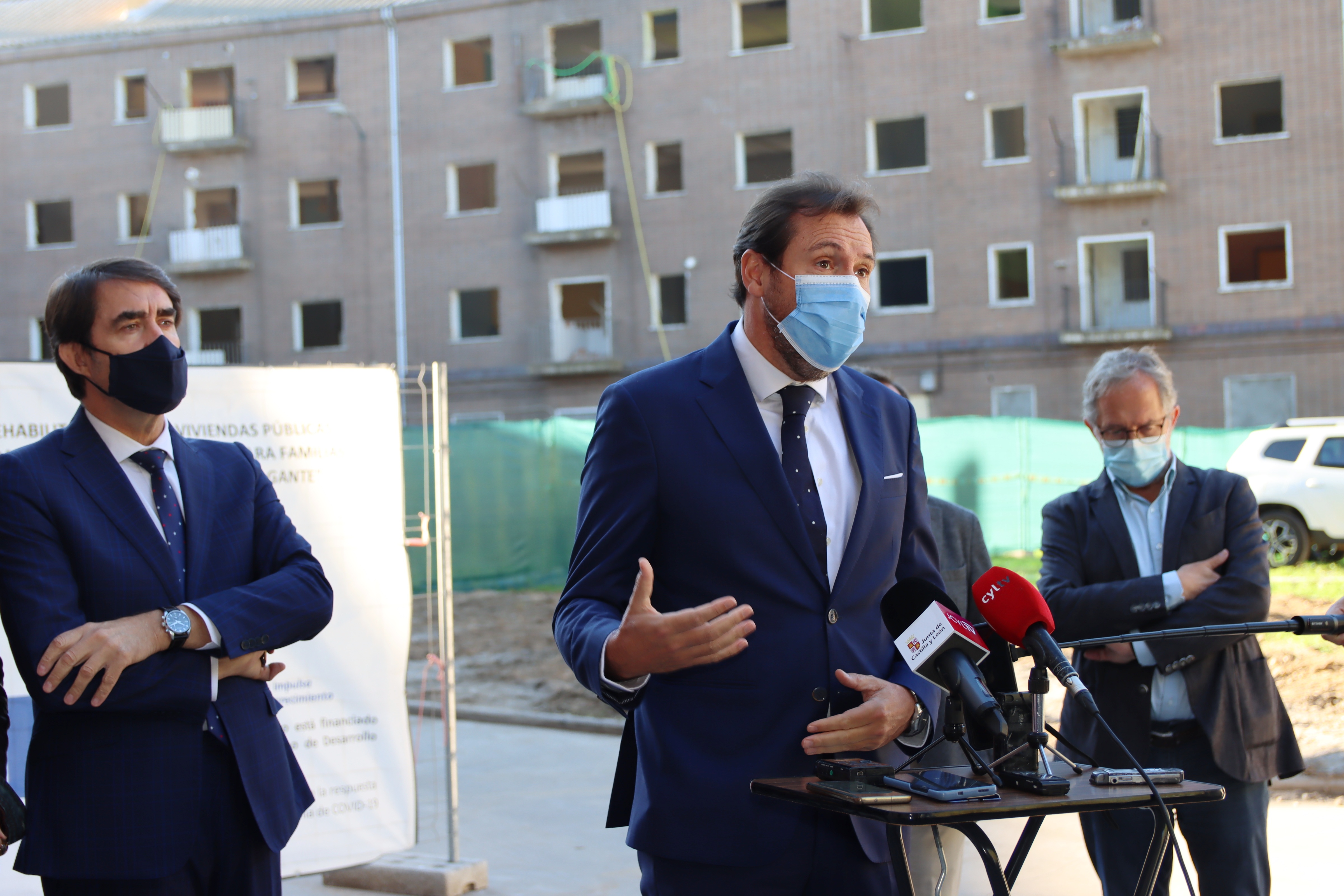 El consejero de Fomento y Medio Ambiente, Juan Carlos Suárez- Quiñones ha explicado el proceso de rehabilitación integral para destinarlo al parque público autonómico de alquiler, especialmente para atender de forma directa a las familias jóvenes inscritas como demandantes de vivienda protegida en alquiler. Las obras comenzaron el pasado mes de agosto, con un plazo de ejecución de 20 meses y un presupuesto de 6,3 millones de euros y que ha contado con financiación procedente del programa europeo REACT-EU. Concluidas las obras, el edificio contará con 63 viviendas de dos y tres dormitorios, 63 trasteros y zonas comunitarias con espacios ajardinados y de recreo, aparcamiento de bicicletas y zona de reserva de contenedores de basuras y compostaje.