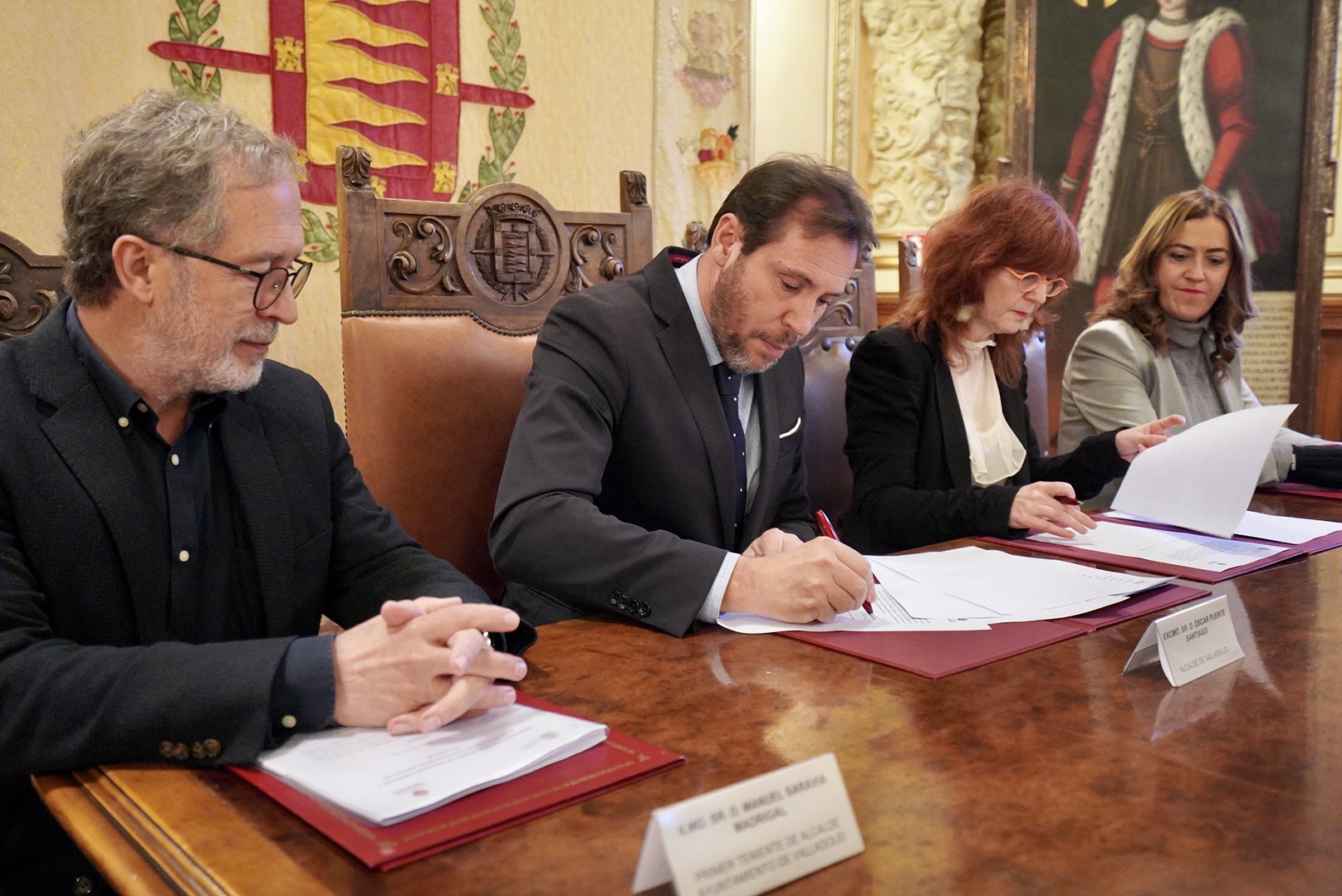 Firmado el protocolo entre el Ministerio de Justicia y el Ayuntamiento de Valladolid para la construcción de la Ciudad de la Justicia entorno del colegio de El Salvador. La Subsecretaria de Justicia, María Sánchez Hernández, ha firmado el documento con el alcalde, Óscar Puente, acompañado por el concejal de Planeamiento Urbanístico, Manuel Saravia. Al acto celebrado en la Casa Consistorial entre las administraciones central y local ha acudido también la delegada del Gobierno en Castilla y León, Virginia Barcones, y los operadores del ámbito judicial, como jueces, abogados y procuradores. Al final del acto el presidente de la Audiencia Provincial de Valladolid, Javier Carranza, ha expresado su satisfacción por el acuerdo alcanzado.