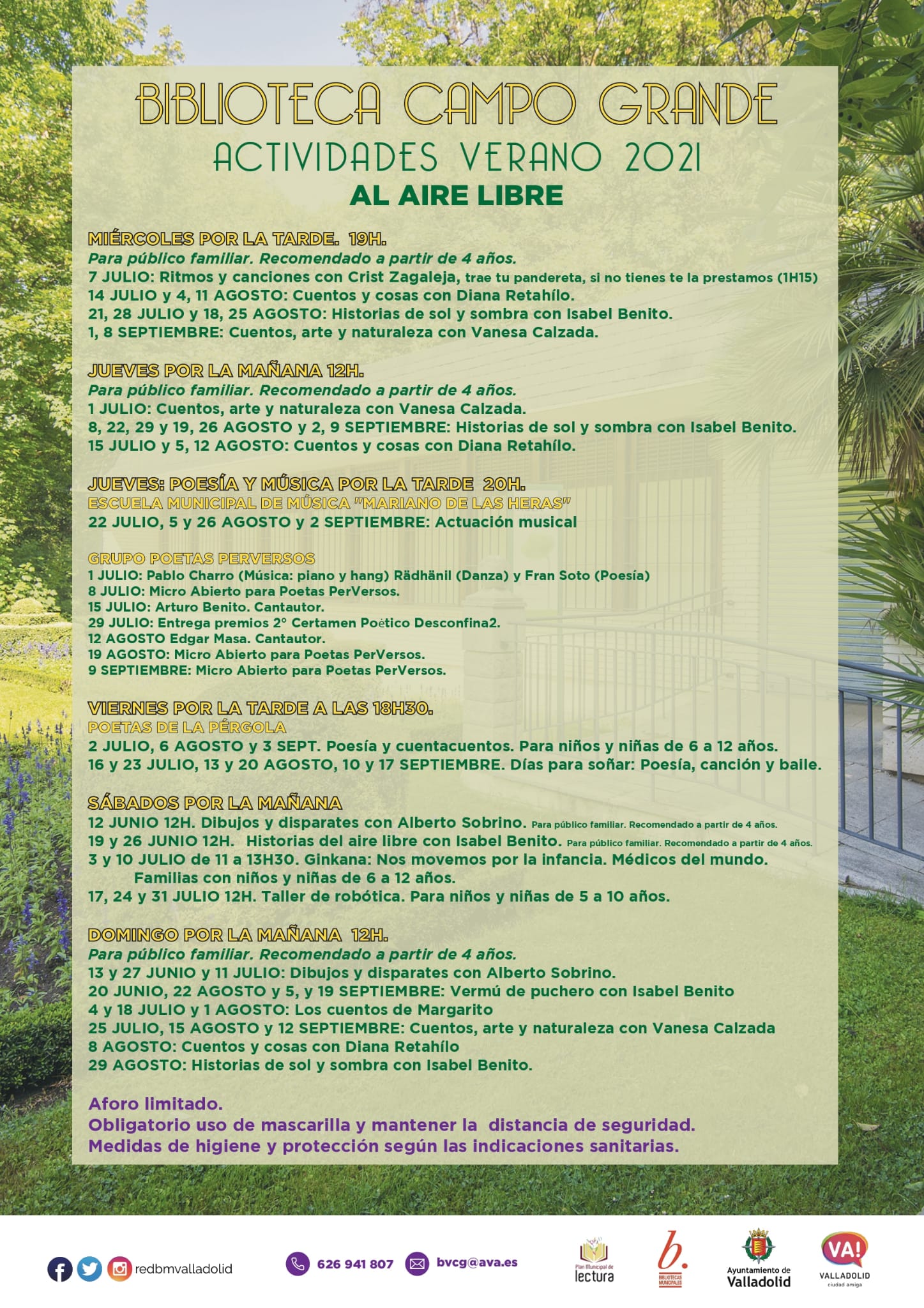 La concejala María Victoria, ha presentado durante su visita el programa de actividades al aire libre para la temporada veraniega que se realizarán en la Biblioteca de Campo Grande, con las medidas y recomendaciones sanitarias, por lo que habrá usar mascarilla, gel hidroalcohólico, mantener la distancia social y el aforo será reducido.