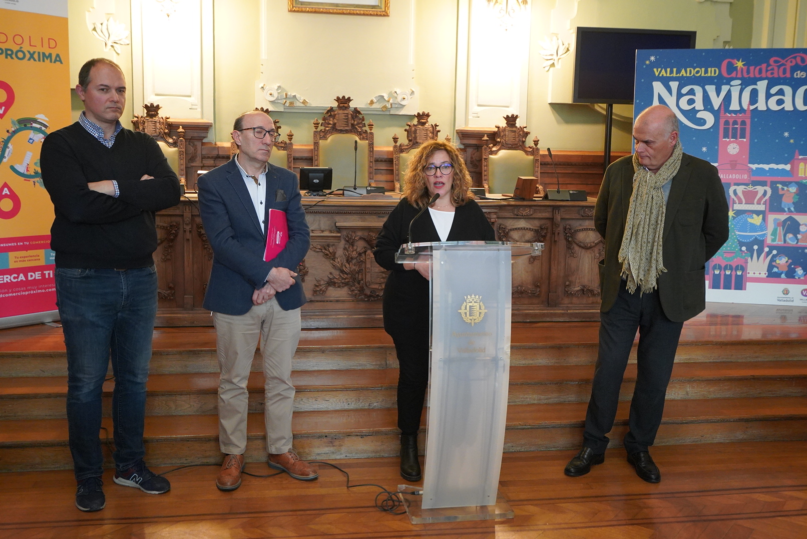 La campaña de Navidad es, sin duda, una de las más importantes a lo largo del año para el comercio de proximidad y esta mañana ha presentado algunas de sus principales acciones la concejala de Innovación, Desarrollo Económico, Empleo y Comercio, Charo Chávez, acompañada por el presidente de AVADECO, Alejandro G. Pellitero, el presidente de FECOSVA, Jesús Herreras, y el vicepresidente de la Cámara de Comercio de Valladolid, Javier Labarga.