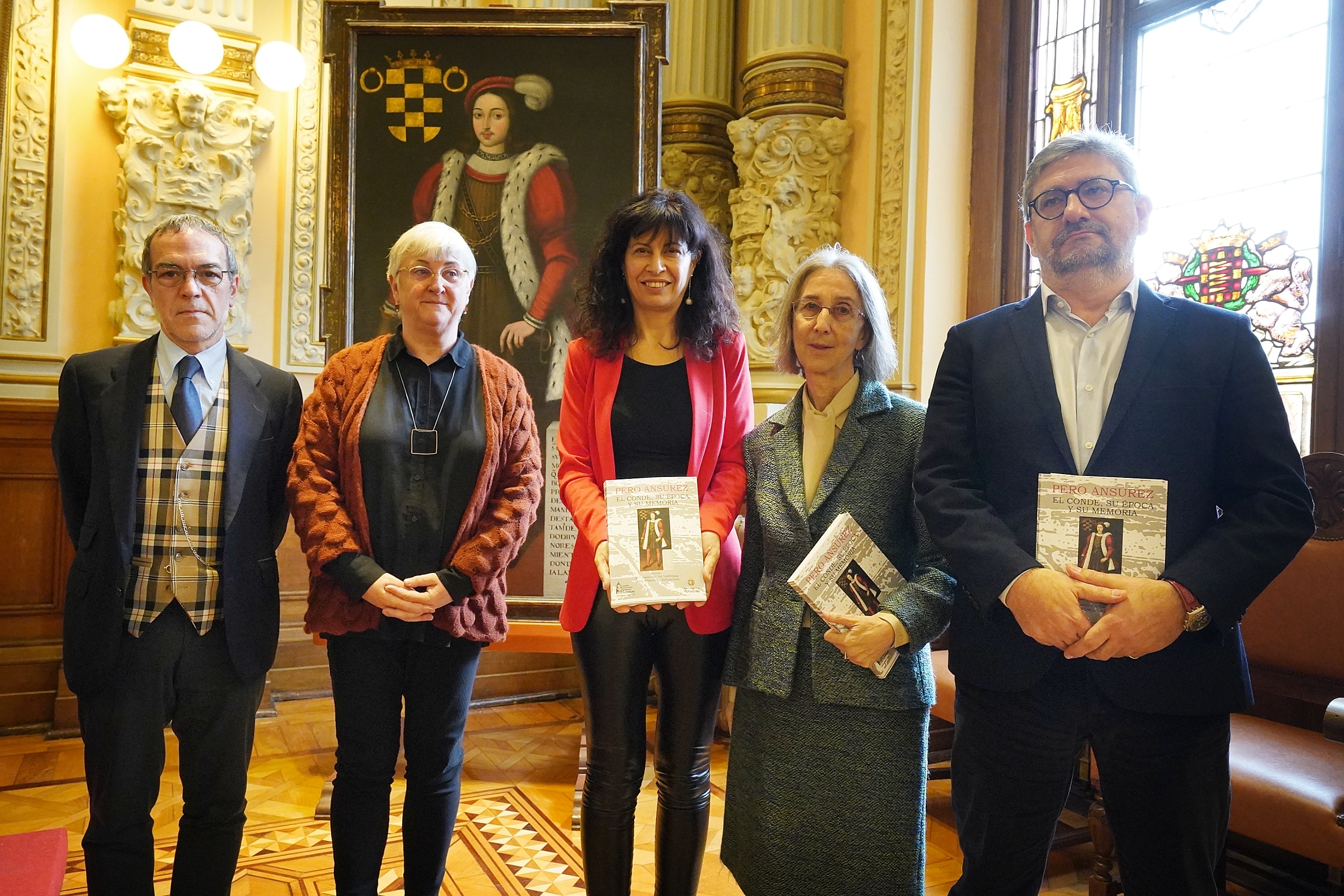 El libro "Actas del congreso Pero Ansúrez: el conde, su época y su memoria" se ha presentado esta mañana en el salón de Recepciones de la Casa Consistorial. El acto ha estado presidido por la concejala de Cultura y Turismo, Ana Redondo, a la que han acompañado el director del Instituto de Historia Simancas, Adolfo Carrasco Martínez, las coordinadoras del proyecto M.ª Isabel del Val Valdivieso y Olatz Villanueva Zubizarreta y el director del Archivo Municipal, Eduardo Pedruelo Martín.