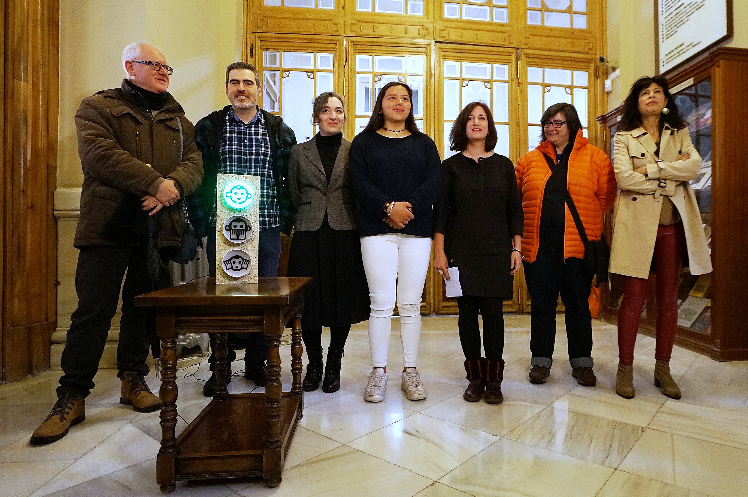 El Ayuntamiento de Valladolid cuenta desde hoy en su vestíbulo con un prototipo del Semáforo del Ruido, dispositivo que señala cuándo se están superando los decibelios permitidos, para contribuir, así, a sensibilizar a la ciudanía sobre la problemática en torno a la contaminación acústica. Precisamente, hoy, último miércoles del mes de abril, se celebra el Día Internacional de la Concienciación sobre el Ruido. Representantes del grupo de trabajo que desarrolló este proyecto en el marco del laboratorio ciudadano de La Ciudad Imaginada 2018 han sido los encargados de colocar en la Casa Consistorial el prototipo, elaborado con plástico reciclado y el microprocesador ARDUINO. Les han acompañado María Sánchez, concejala de Medio Ambiente y Sostenibilidad, y Ana Redondo, concejala de Cultura y Turismo.