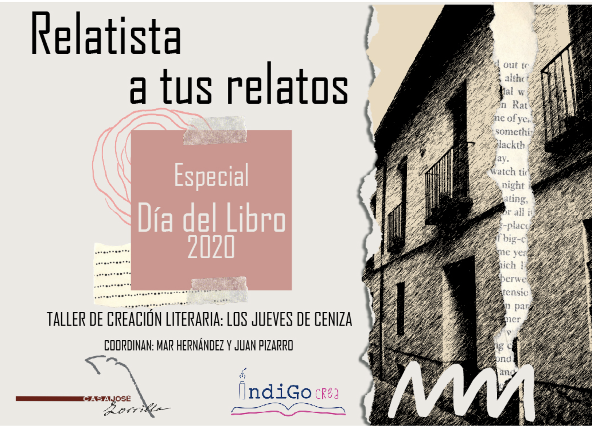 La Casa de Zorrilla y el colectivo ÍndigoCrea promueven en la Casa de Zorrilla el Taller de Creación Literaria "Los Jueves de Ceniza" en cuyo seno ha ido madurando una comunidad de amantes de la escritura que mes tras mes van puliendo su técnica y sus habilidades en este arte.