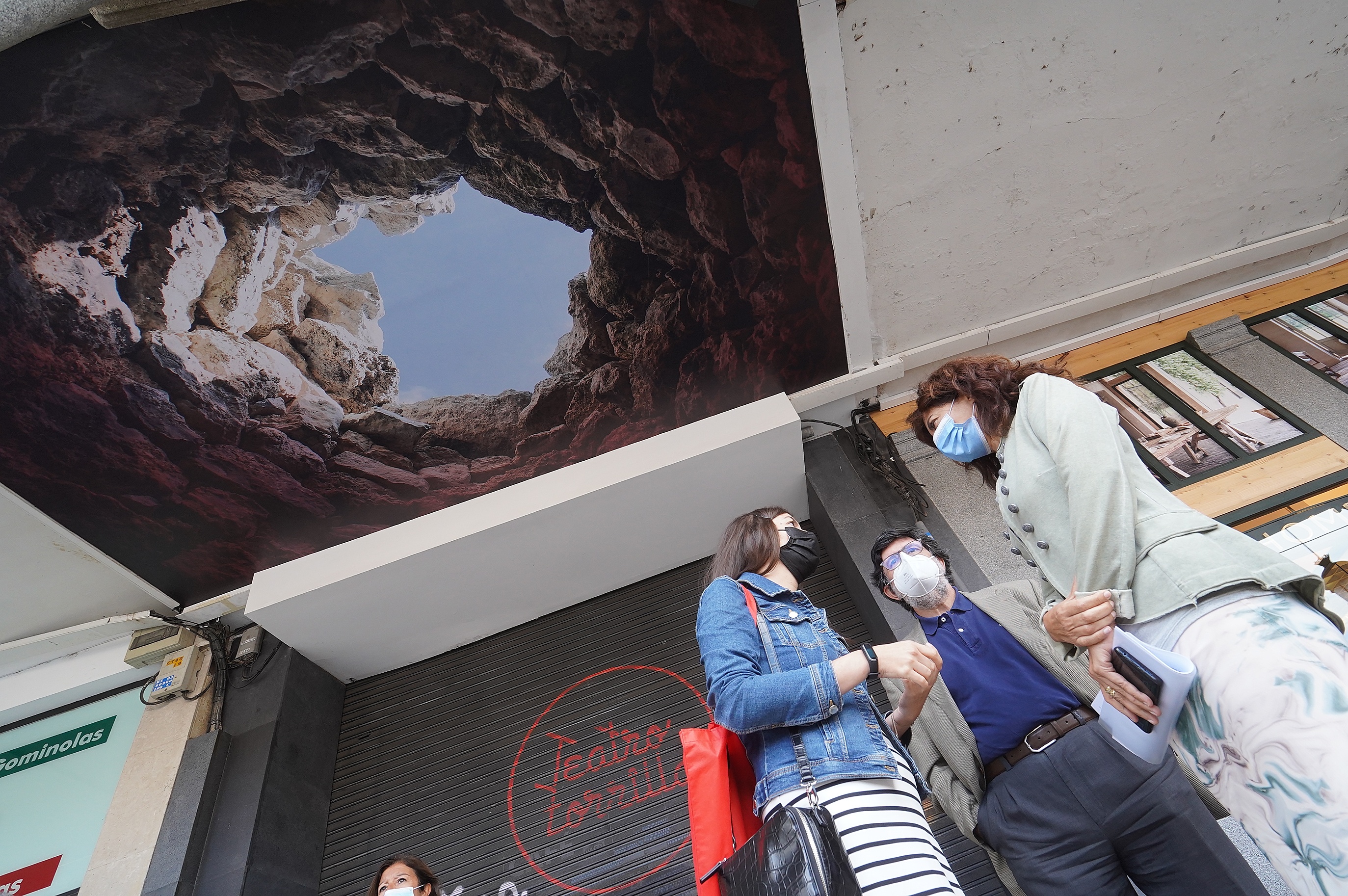 Aire nos invita a levantar la mirada en uno de los soportales de Plaza Mayor, uno de los lugares más transitados de la ciudad, para intuir el aire puro a través de un chozo de pastor.