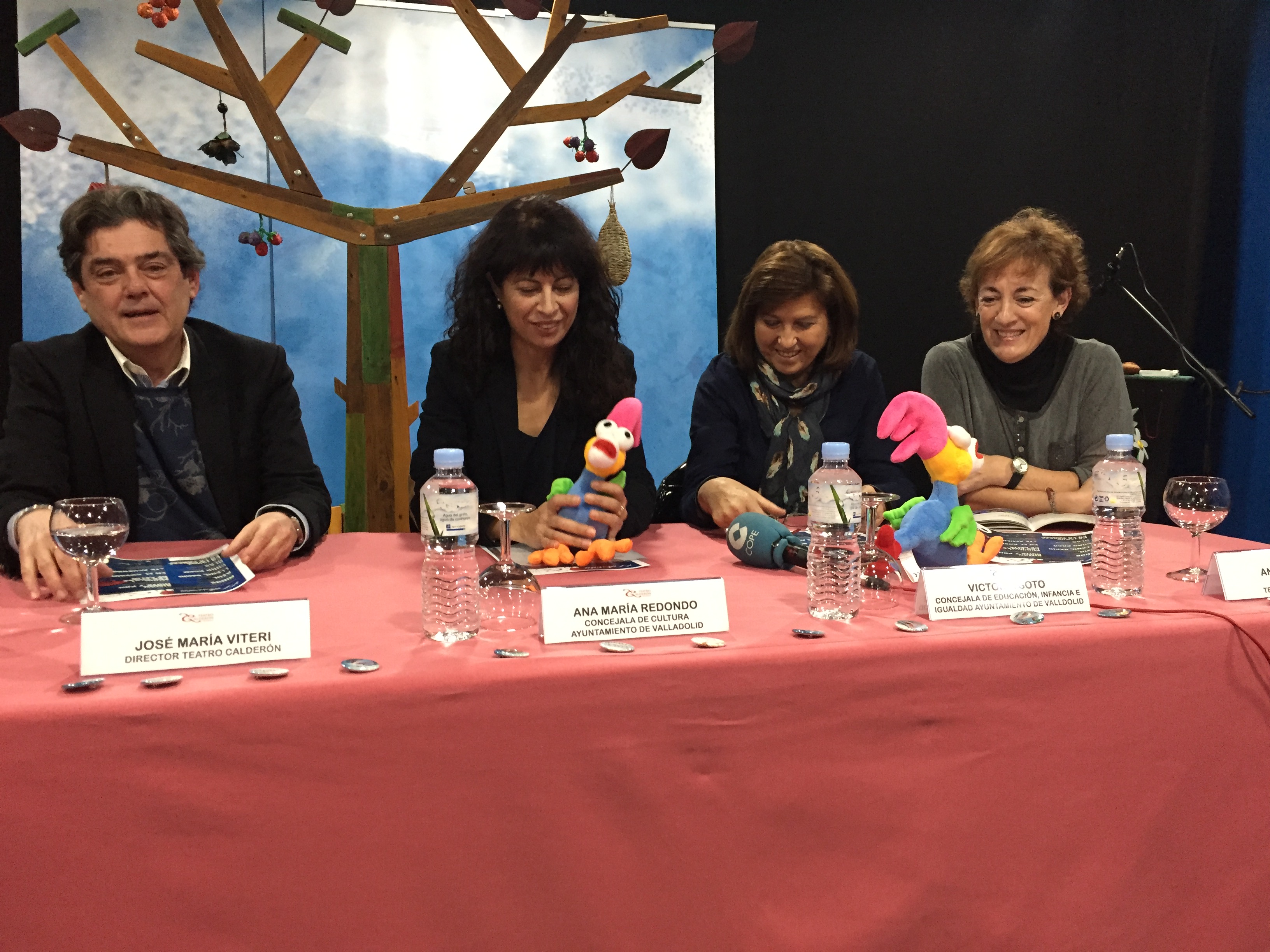 La concejala de Cultura y Turismo, Ana Mª Redondo, acompañada de la edil de Educación, Infancia e Igualdad, Victoria Soto; por el director del Teatro Calderón, José Mª Viteri y de la representante de Teloncillo Teatro, Isabel Gallego, han presentado esta mañana la programación de El Desván para la presente temporada.