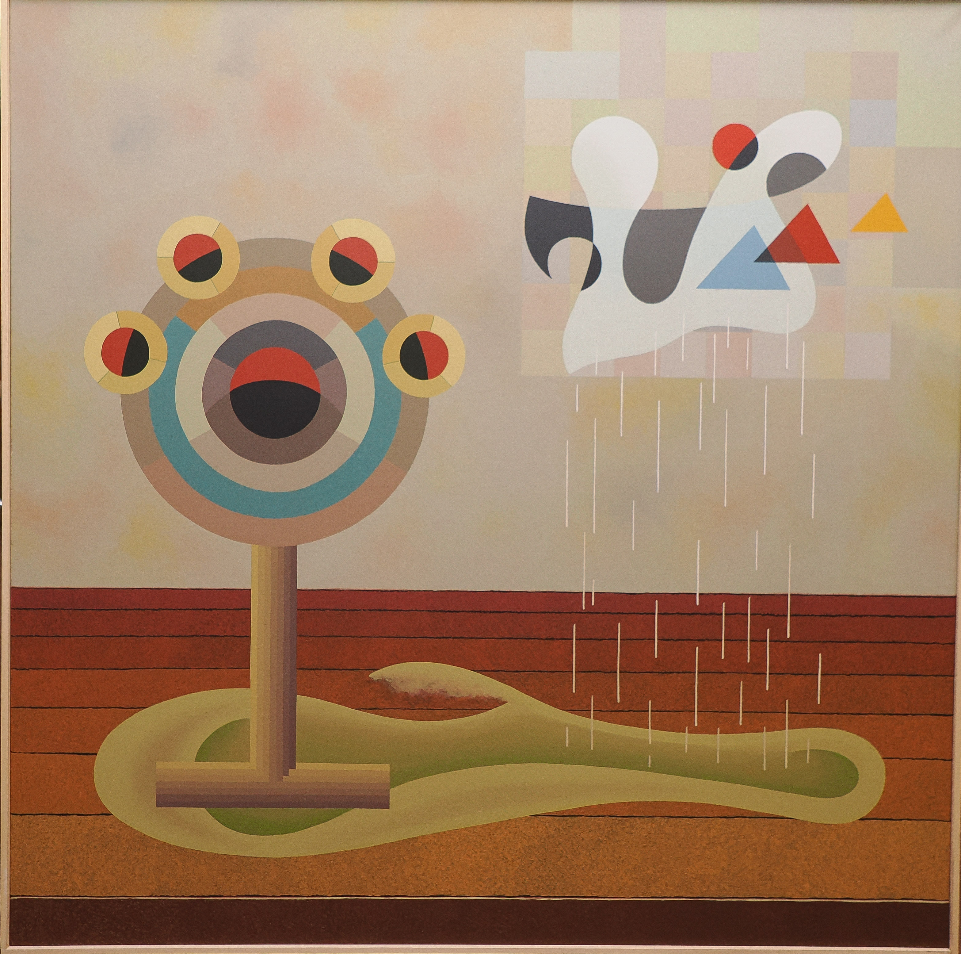 "Es un amasijo de colores agrupados a mi manera con una figura geométrica y otra más orgánica", señala Enrique Rodríguez, quien considera que a cada persona que vea el cuadro, le sugerirá una cosa.