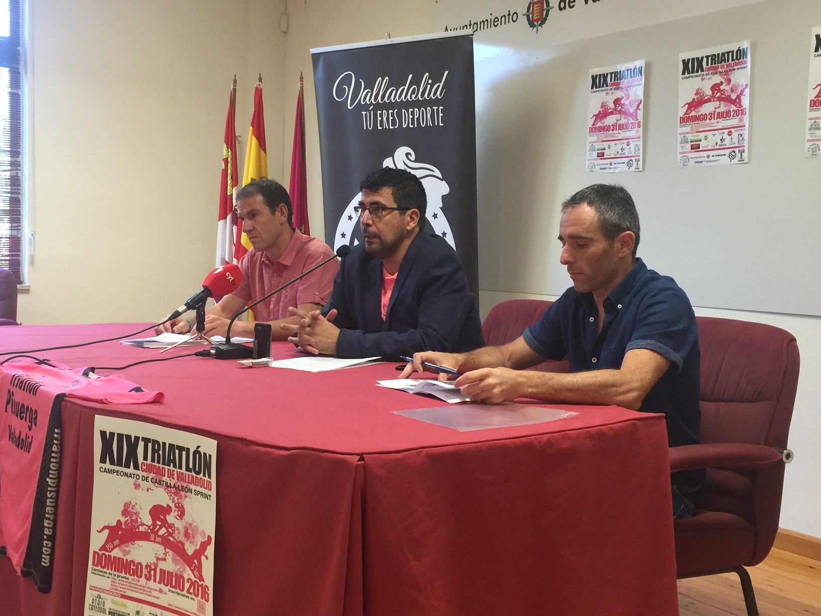 La Casa del Deporte ha acogido esta mañana la presentación del XIX Triatlón ‘Ciudad de Valladolid’, que se disputará el próximo domingo día 31, en un acto que ha contado con la presencia del concejal de Participación Ciudadana, Juventud y Deportes, Alberto Bustos; el presidente de la Federación de Castilla y León de Triatlón, Amancio del Castillo; y el presidente del C.D. Triatlón Pisuerga – Tripi, Roberto Rey.