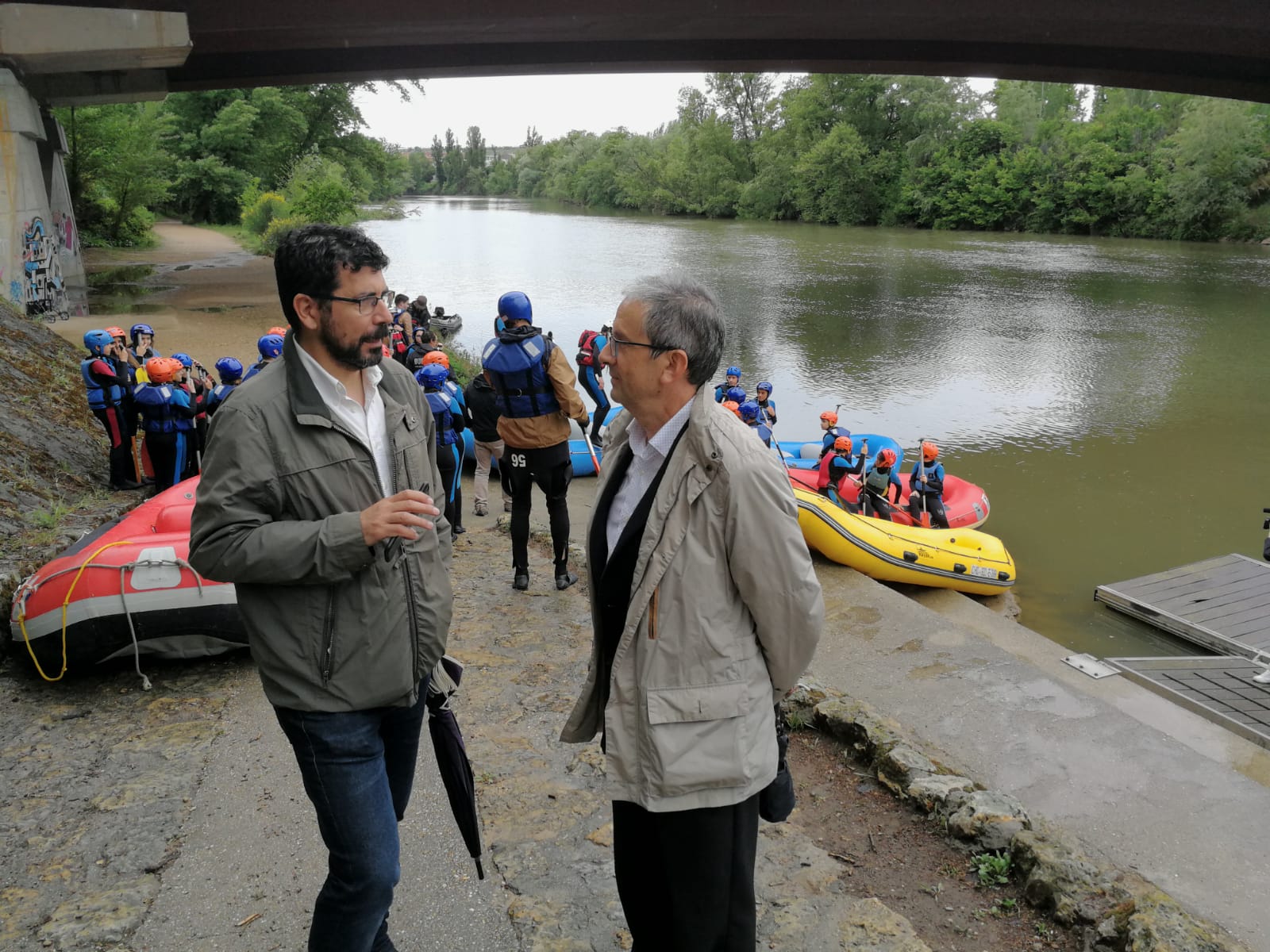 El presidente de la CHD, Juan Ignacio Diego Ruiz, y el concejal de Deportes y Participación Ciudadana, Alberto Bustos, han acudido hoy al embarcadero de Las Moreras para acompañar a los escolares que realizaban la actividad esta mañana, pertenecientes al Colegio Vicente Aleixandre, Instituto Zorrilla y Centro El Pino.