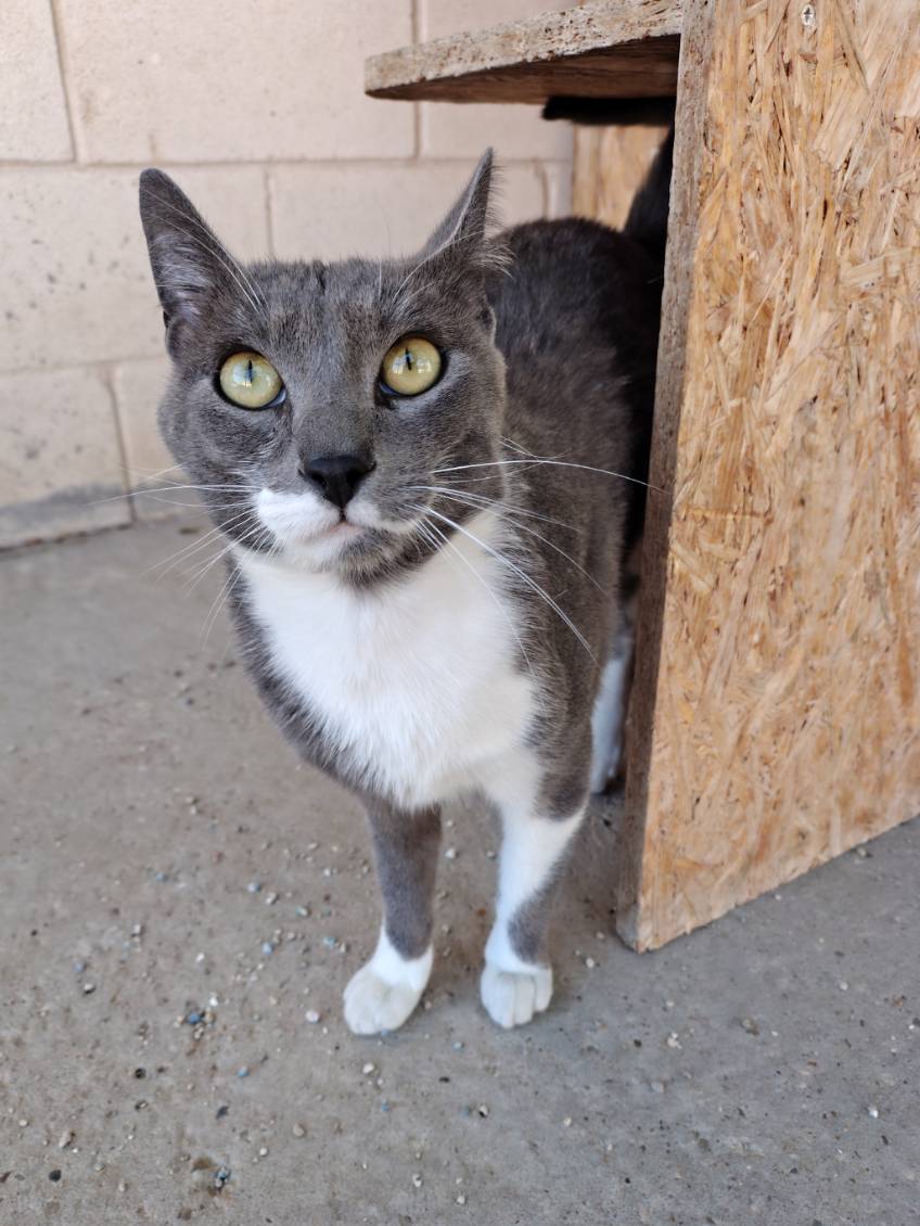 Recogido en residencia Riosol (polideportivo Pisuerga). No es sociable con humanos, pero se lleva bien con otros gatos.