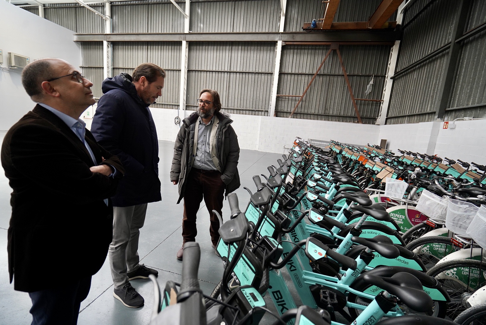 El número de usuarios inscritos en BIKI, el sistema público de alquiler de bicicletas, ha alcanzado los 5.700 y en el primer mes de funcionamiento se han superado los 23.000 usos. Son los datos que ha destacado el alcalde en la presentación de las instalaciones ubicadas en el polígono de Argales. Óscar Puente ha realizado la visita a la nave situada en la calle Vázquez de Menchaca acompañado por el concejal de Movilidad y Espacio Urbano, Luis Vélez, que además es presidente de AUVASA, la empresa municipal encargada de la gestión del servicio. También han asistido otros miembros del Gobierno Municipal, junto con el gerente, Álvaro Fernández, y varios técnicos de la empresa.