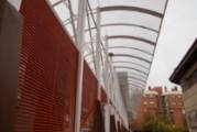 El diseño de la plaza de la Solidaridad data del año 1993 y en su intervención mantiene la estructura metálica de uno de los cerramientos de la fábrica a modo de verja permeable y la losa de hormigón que coronaba esta estructura "para memoria colectiva del espacio fabril recuperado para la colectividad". De hecho, las piezas curvas que rematan las marquesinas con telas metálicas y cables tensores "intentan hablarnos de los telares de lanzaderas, hilos y telas, que ejercieron una actividad importante en el ámbito del barrio".
