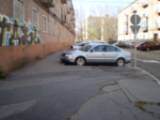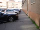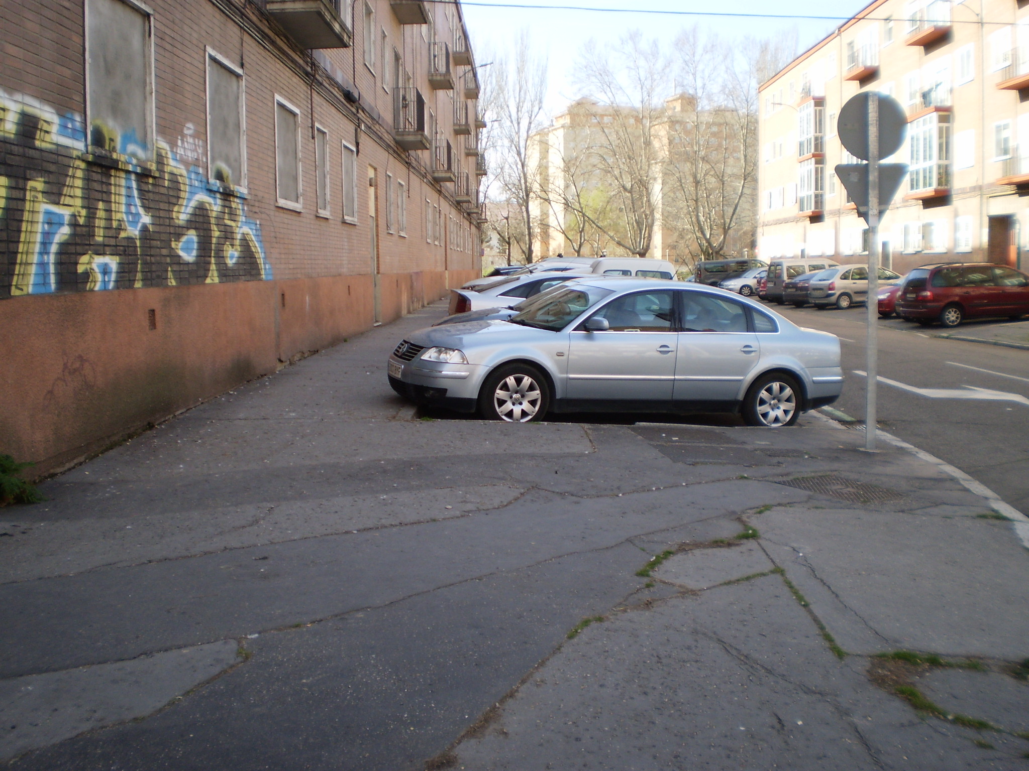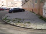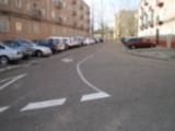 Dicho aparcamiento se concentra en una doble batería central, con circulación perimetral y nuevas aceras pavimentadas con losas de terrazo tipo pétreo de 30 x 30 x 6 centímetros. En los extremos de las baterías se disponen dos pequeñas zonas estanciales en pavimento terrizo con árboles y bancos de madera (estos últimos pendientes de instalar) además de otros cuatro alcorques para árboles de sombra en el eje de la calle. Se deja con pavimento provisional en hormigón la conexión con las aceras de Avda. Reyes Católicos. Previamente se renovó completamente el alcantarillado, dejando también previstas las acometidas para el edificio de viviendas que está rehabilitando la Junta de Castilla y León, y se construyó la nueva red de riego.