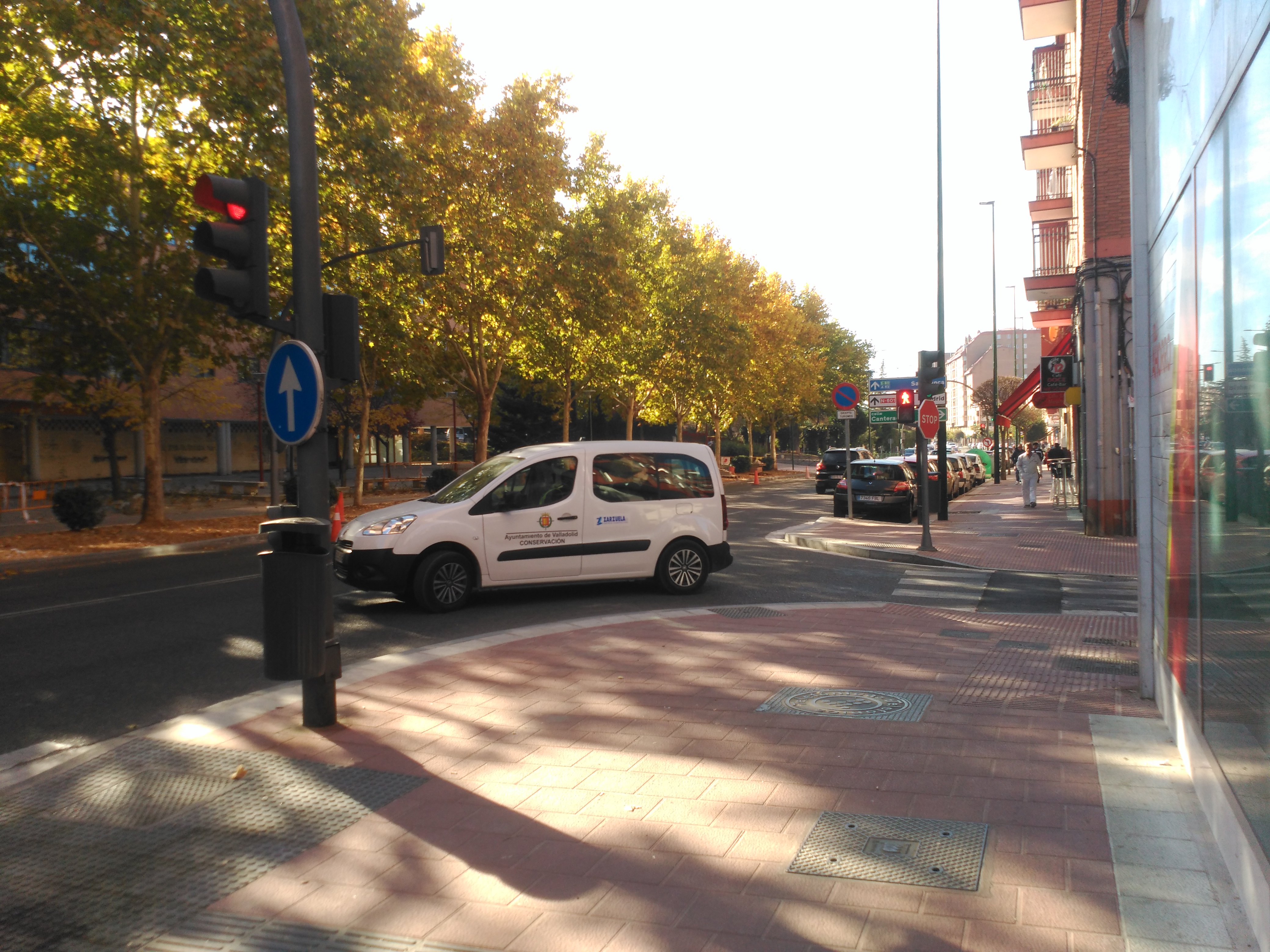 Por otra parte, además del pavimento, la novedad más significativa de la intervención es que, mediante el contrato de mantenimiento del alumbrado público, se han trasladado las columnas existentes en la acera de los pares a la de los impares, puesto que en su ubicación anterior las luminarias estaban parcialmente ocultas por los frondosos árboles de esa acera, de tal modo que la iluminación de la vía resultaba deficiente. En la acera de los números pares se han instalado columnas de alumbrado bajas, por debajo de las copas, para servir únicamente a la acera. Finalmente, se ha aprovechado la intervención en esta acera de los números pares para reparar a fondo daños en el pavimento provocados por las raíces, ampliando y unificando los alcorques.