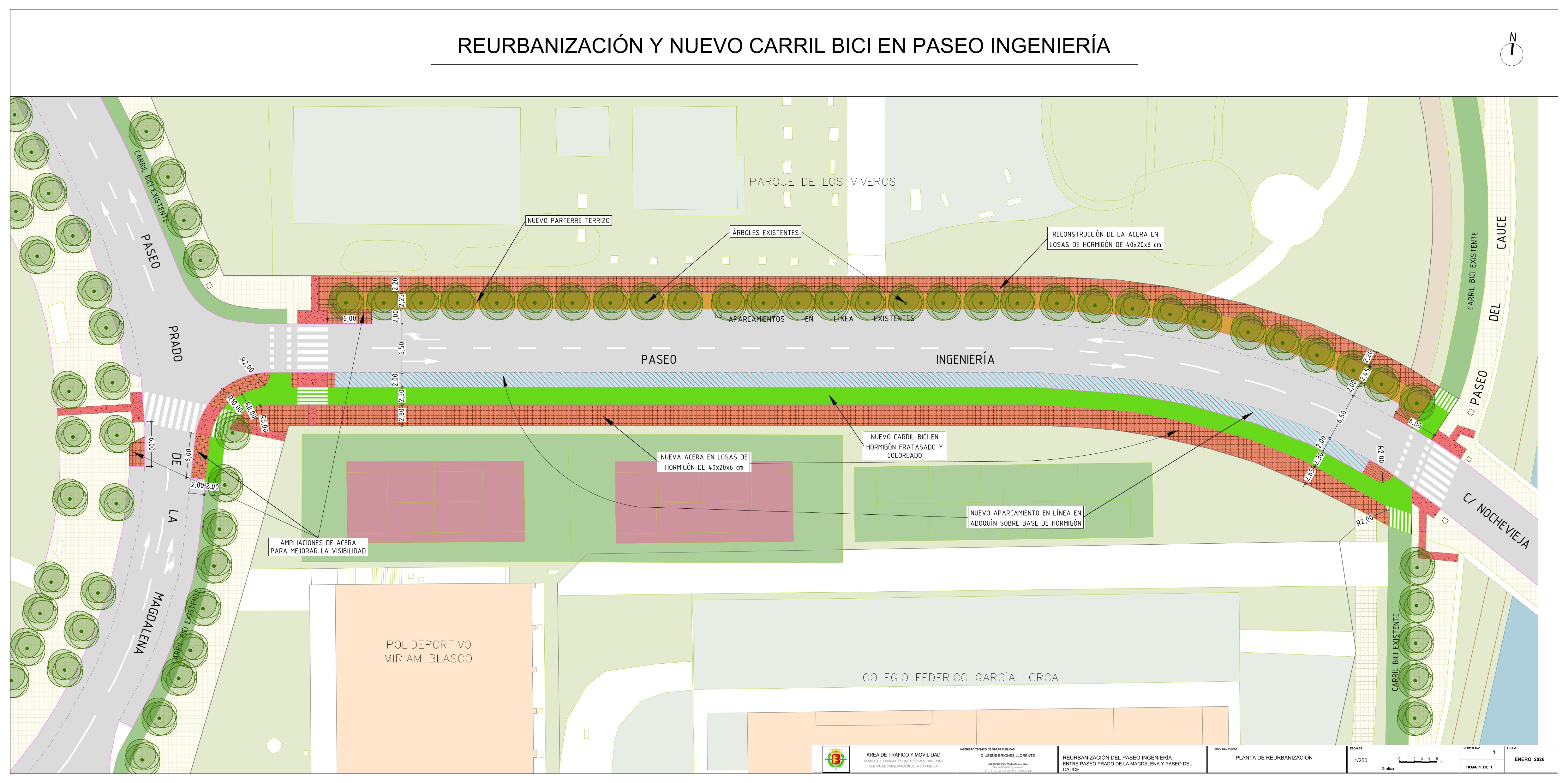 El próximo 16 de febrero darán comienzo las obras de reurbanización del paseo de la Ingeniería, en el tramo comprendido entre el paseo del Prado de la Magdalena y el paseo del Cauce. La actuación cuenta con un presupuesto estimado de 166.000 euros y un plazo de ejecución aproximado de tres meses.