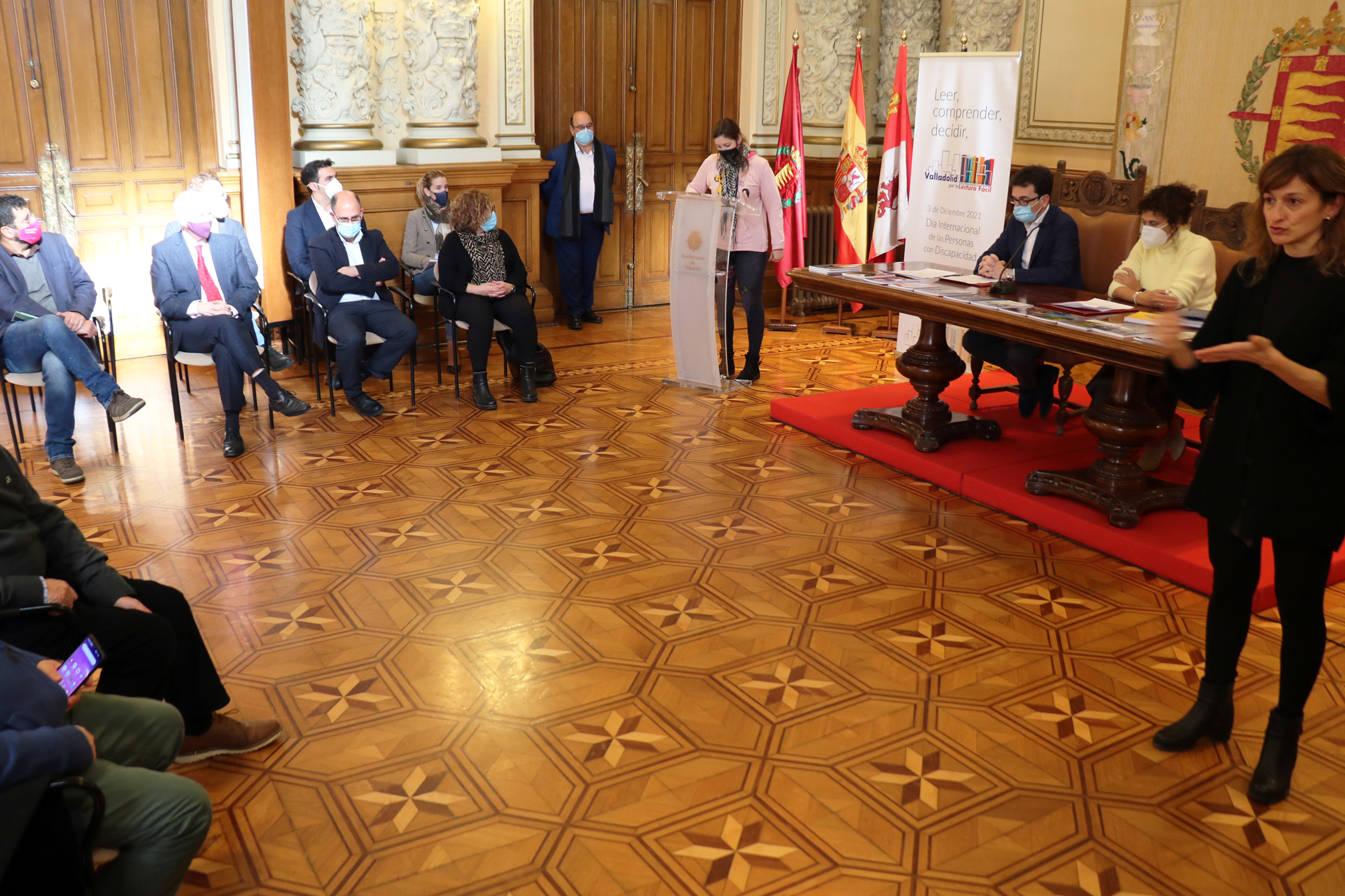 En el acto institucional, la entidad Plena Inclusión Castilla y León ha reconocido, a través de la intervención de su técnica de Comunicación, Eva Martín, que hoy las personas con y sin discapacidad de Valladolid está de enhorabuena porque se da un paso más hacia la accesibilidad y la comprensión de la información para todas las personas.