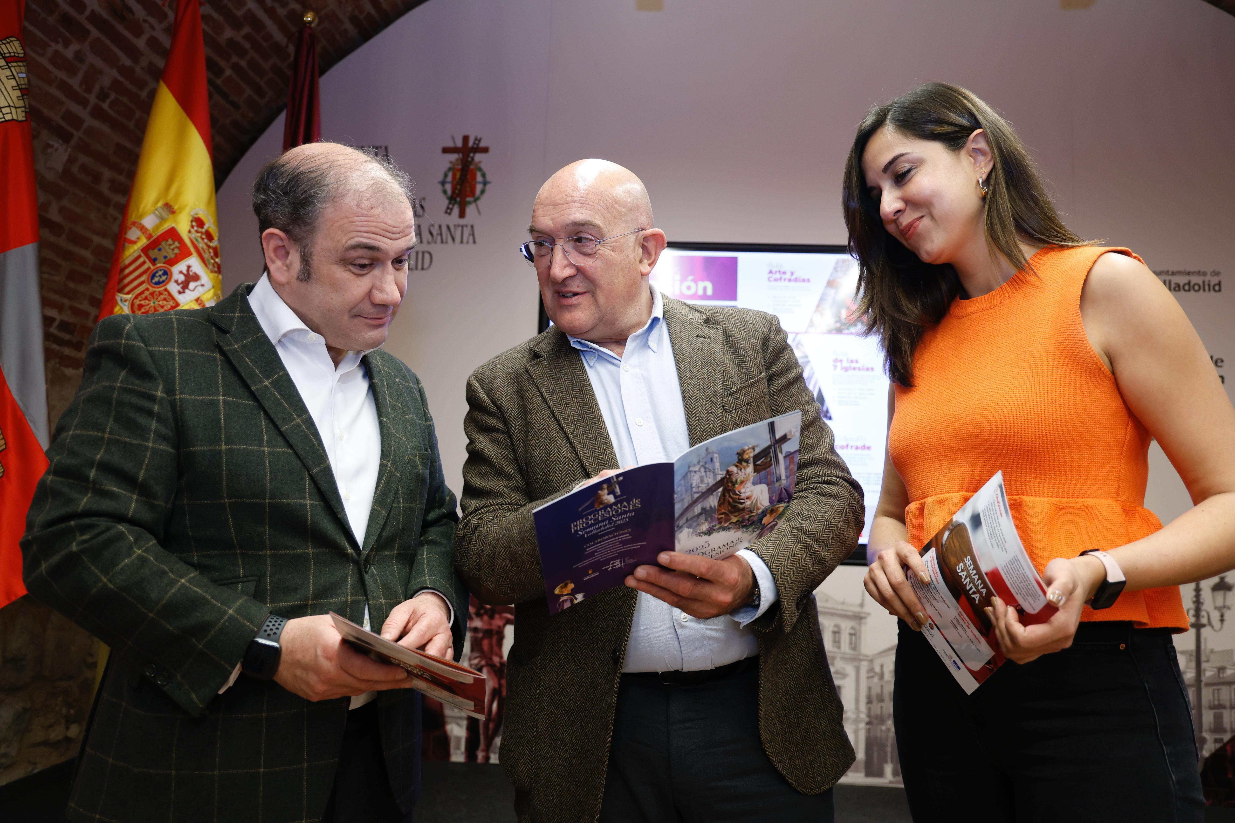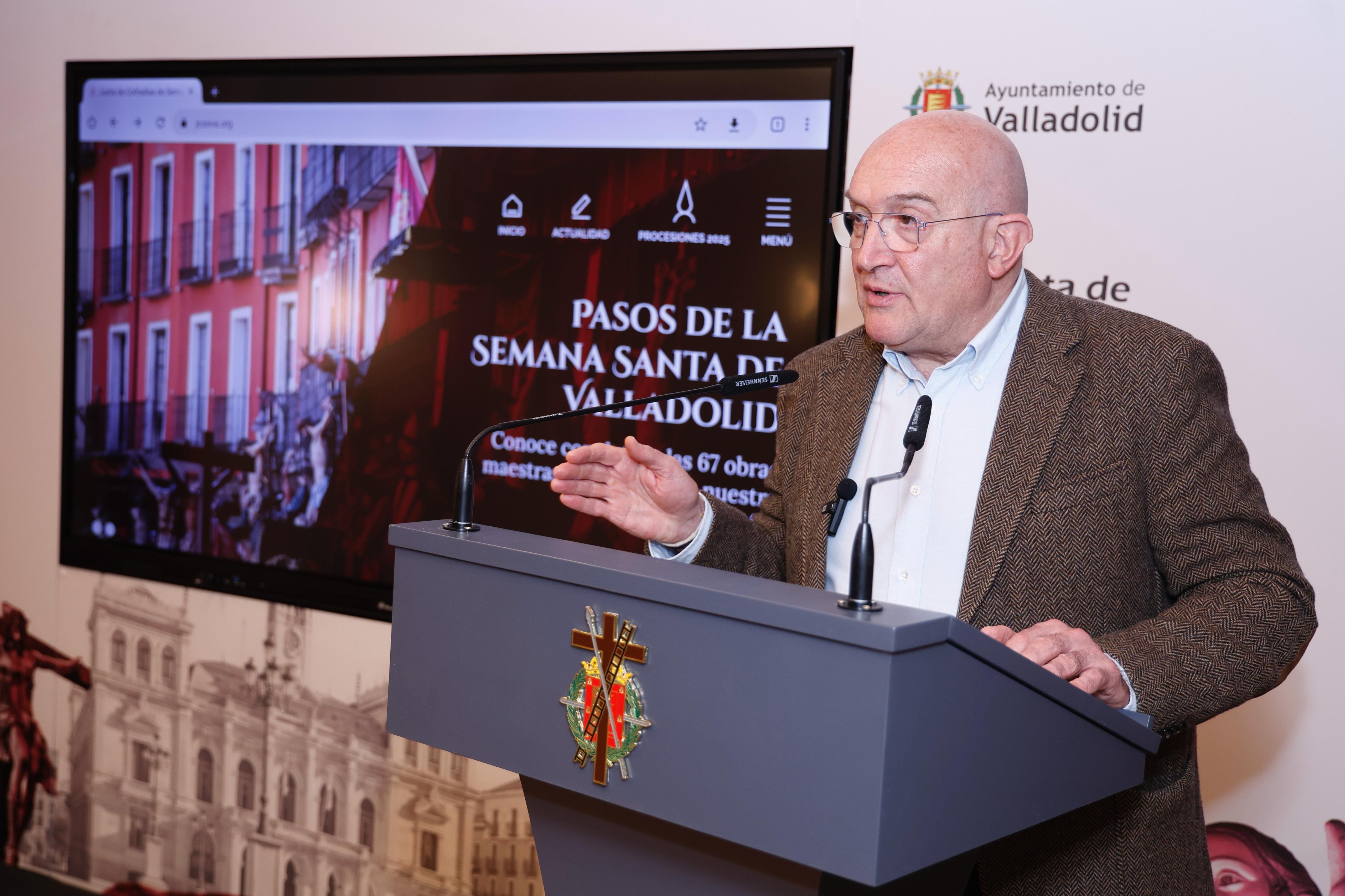 El alcalde, Jesús Julio Carnero, y el presidente de la Junta de Cofradías de Valladolid, Miguel Vegas, han presentado el Programa de Semana Santa 2025 de Valladolid junto con la oferta turística que el Ayuntamiento de Valladolid, a través de la Sociedad Mixta, ha organizado para descubrir el patrimonio cultural y religioso de la ciudad del 11 al 20 de abril. Además, el acto ha acogido la presentación de la nueva web de la Junta de Cofradías, diseñada para potenciar y divulgar el legado de la Semana Santa de la ciudad y que aspira a convertirse en una página de referencia a nivel nacional.