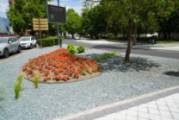 La jardinería y redes de riego de las dos isletas mayores de la intersección han sido completamente renovadas, con una combinación de plantaciones y áridos ornamentales en la que destacan las cuatro nuevas palmeras, además de macizos florales, etc. En el lateral reurbanizado de Arco de Ladrillo se han mantenido todos los árboles que se encontraban en buen estado.