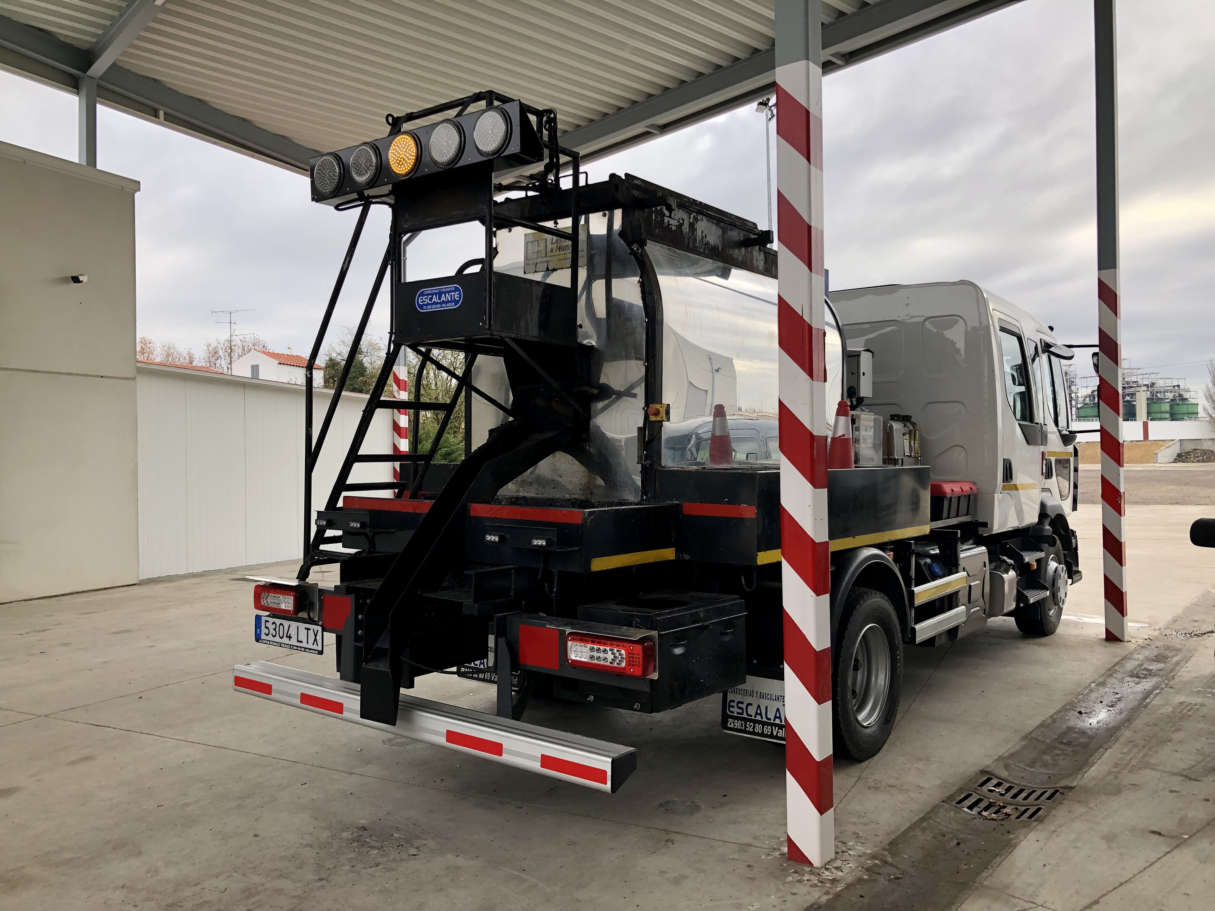 Técnicamente, este vehículo viene equipado los sistemas de seguridad propios de su gama. Adicionalmente se le han incorporado nuevos sistemas de señalización y visibilidad desde la parte trasera, ya que su trabajo se desarrolla principalmente en la vía pública con tráfico rodado, y se precisa que sea seguro tanto para el resto de vehículos que circulan a su alrededor, como para la brigada municipal que se encuentra trabajando junto él. Monta un motor de combustión de 176 kW con un nivel de contaminación CEE EURO VI. La cabina es de formato doble con capacidad de seis pasajeros, indispensable para el tipo de trabajo a desarrollar (debe transportar a la brigada).