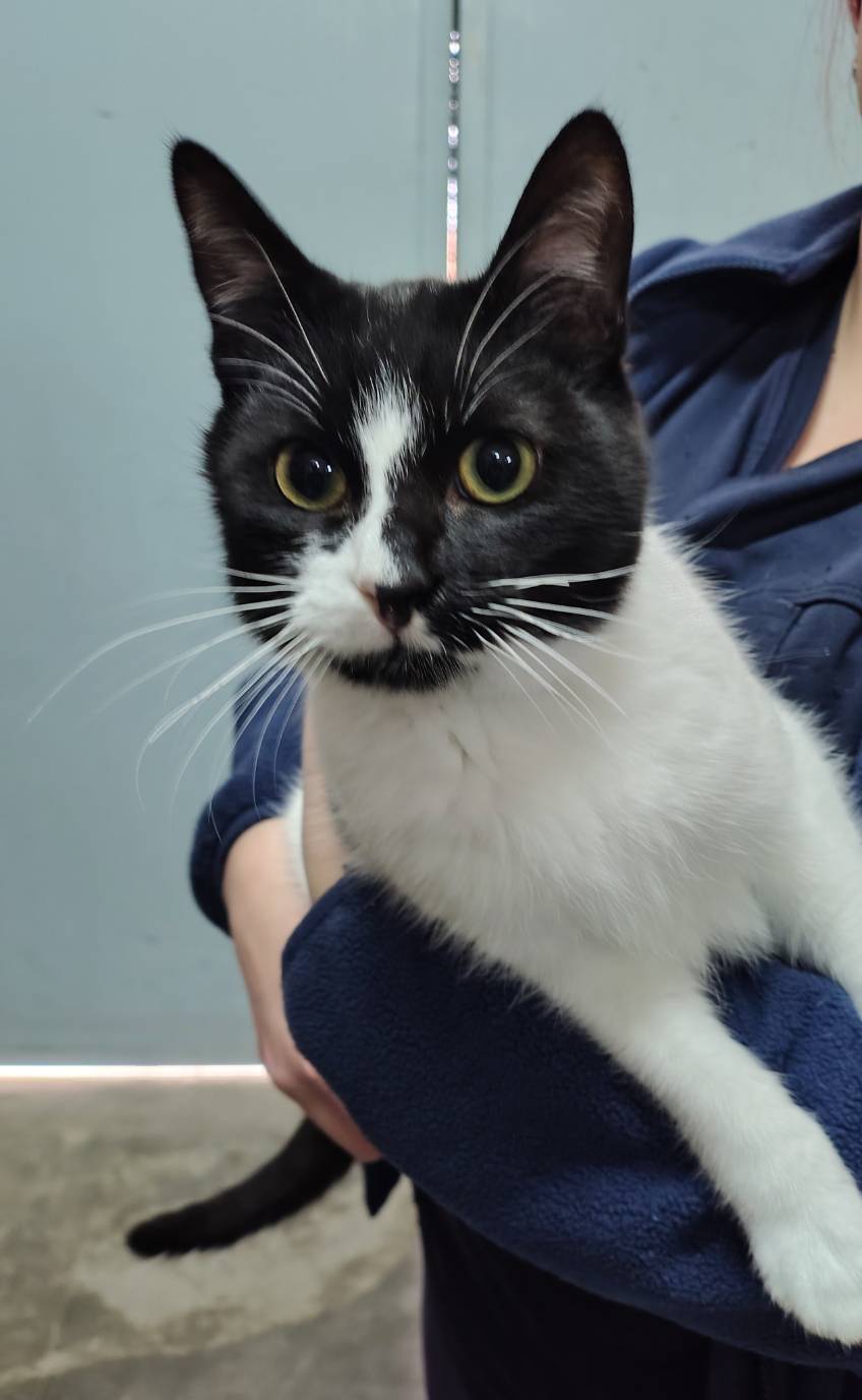 Es muy cariñoso y juguetón. Tiene un ojo enucleado.
