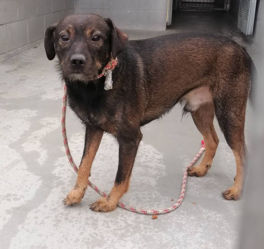 Muy cariñosa con las personas, no convive con otros perros, no aparenta la edad, tiene energía y ganas de encontrar una casita