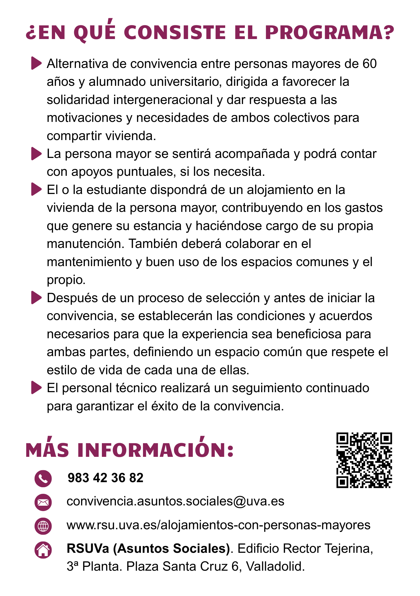 - Web: www.rsu.uva.es/alojamientos-con-personas-mayoresEste enlace se abrirá en una ventana nueva.