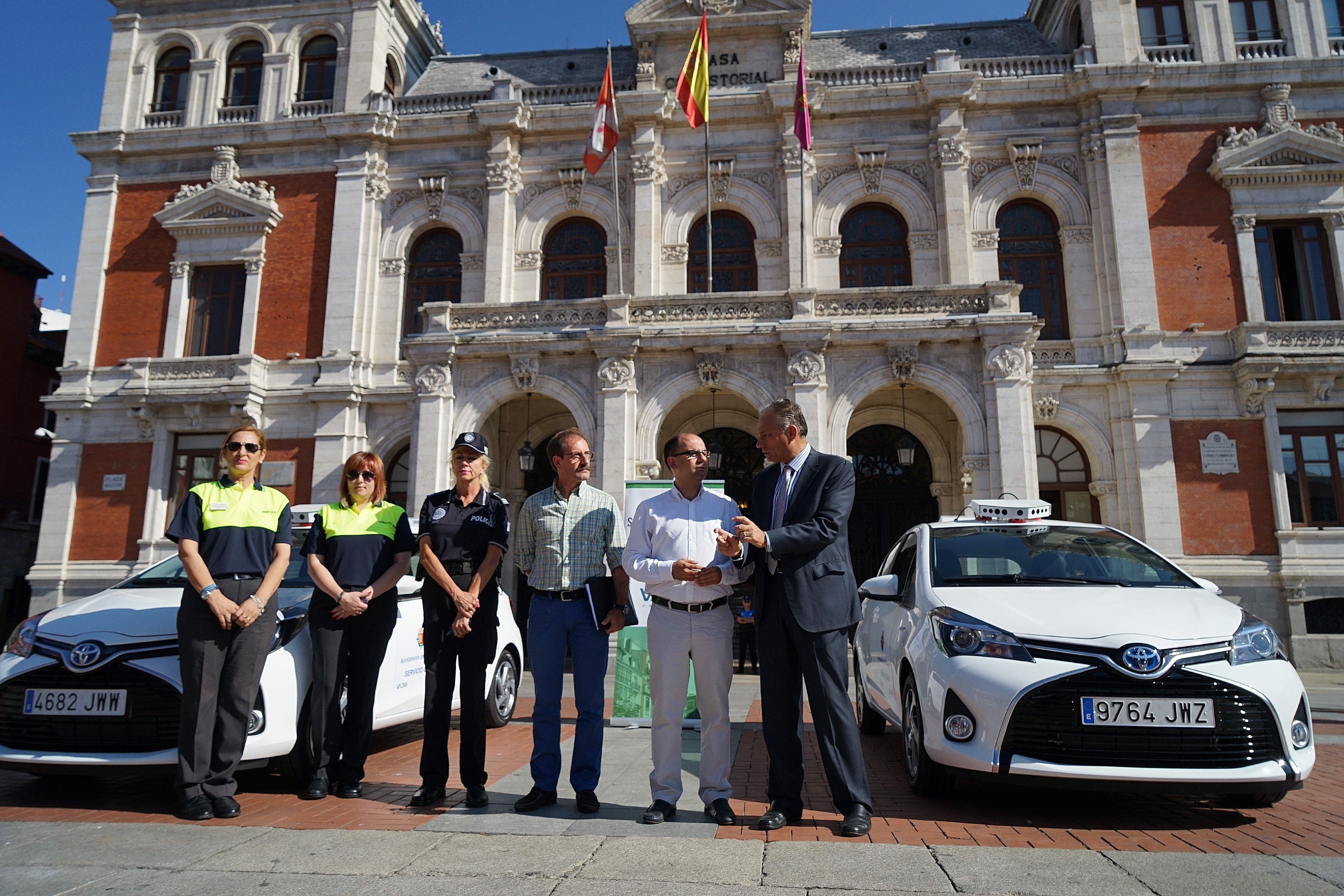 El concejal de Seguridad y Movilidad Luis Vélez y el Delegado de Empark – Dornier para Castilla y León han presentado este martes los dos nuevos vehículos híbridos de lectura de matrículas conocidos como "visual car", que circularán por las calles de Valladolid desde el día de hoy.