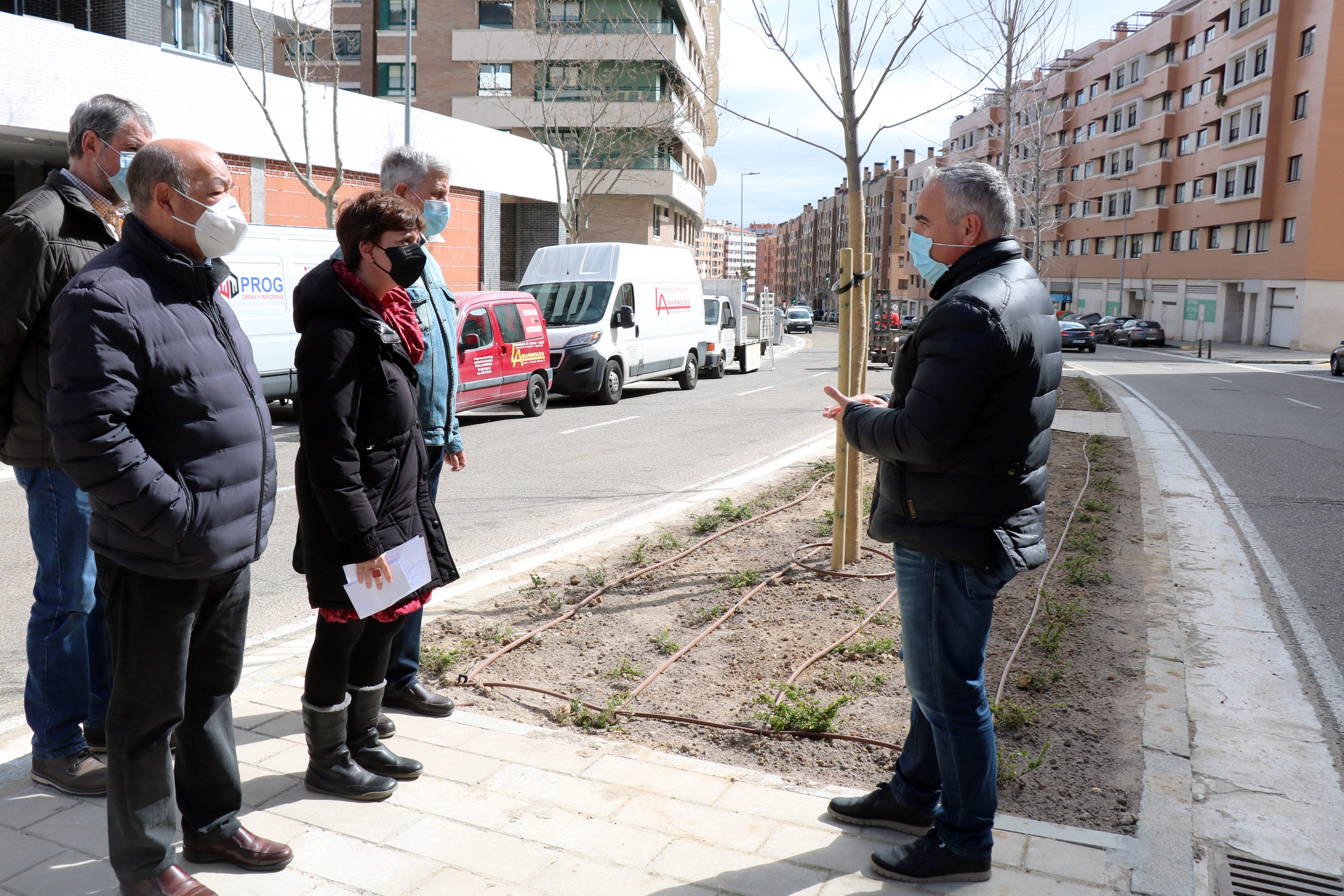 La concejala de Medio Ambiente y Desarrollo Sostenible, María Sánchez, acompañada por miembros de la Asociación de Vecinos de Parquesol, ha visitado hoy en el barrio de Parquesol la zona donde se ha ejecutado un proyecto de plantación de arbolado en una superficie de 2.500 metros cuadrados en dos de las principales vías del barrio como son Hernando de Acuña (entre Adolfo Miaja de la Muela y Ciudad de la Habana) y Manuel Azaña.
