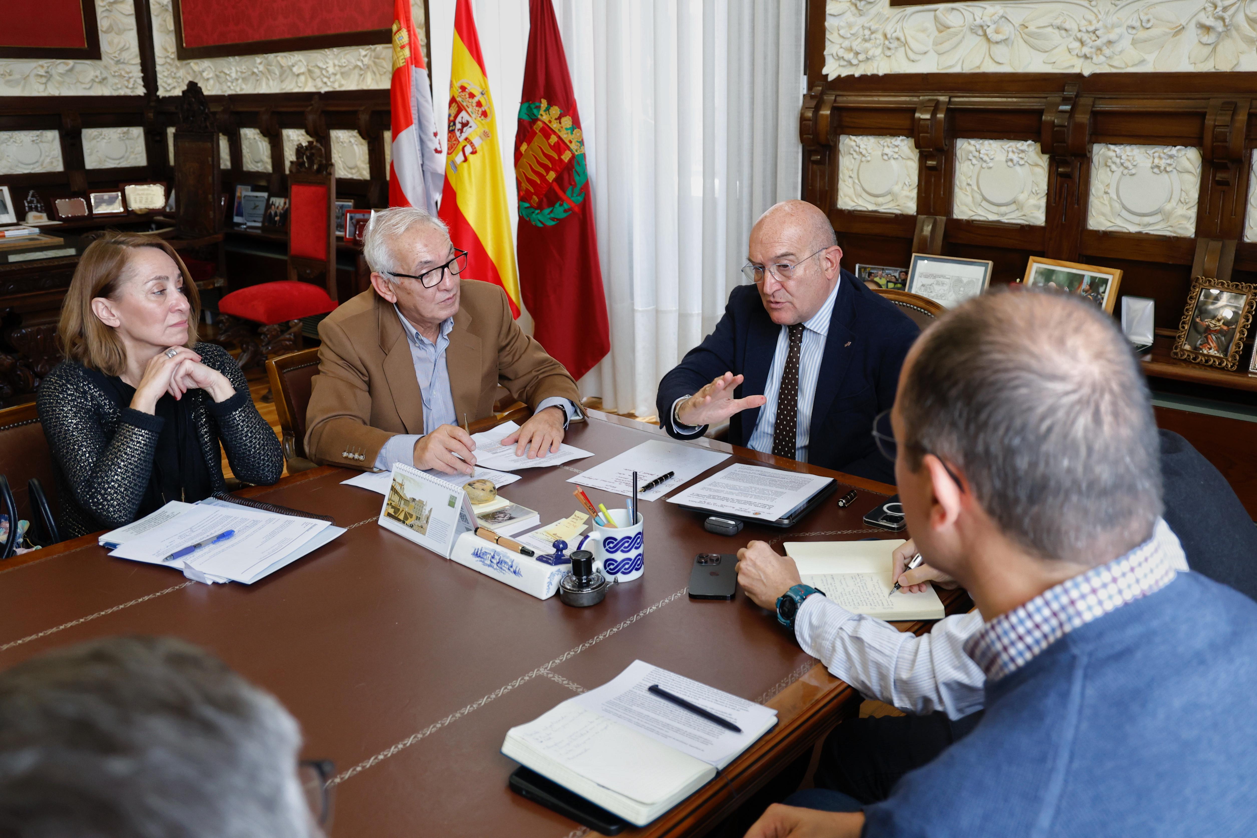 El alcalde de Valladolid, Jesús Julio Carnero, ha mantenido hoy un encuentro con la Asociación de Propietarios y Empresarios del Polígono de San Cristóbal con el fin de potenciar y fortalecer el desarrollo de este parque industrial, uno de los mayores de la Comunidad y del territorio nacional, motor de desarrollo para el empleo y la economía de la ciudad, en el que llevan a cabo su actividad profesional diaria cerca de 20.000 trabajadores. A la reunión, que se ha desarrollado en el Ayuntamiento, han asistido también los concejales de Urbanismo y Vivienda y Medio Ambiente, José Ignacio Zarandona y Alejandro García Pellitero, respectivamente, así como los integrantes de la Junta Directiva de la citada Asociación, con su presidente, Antonio Rodríguez García, a la cabeza.