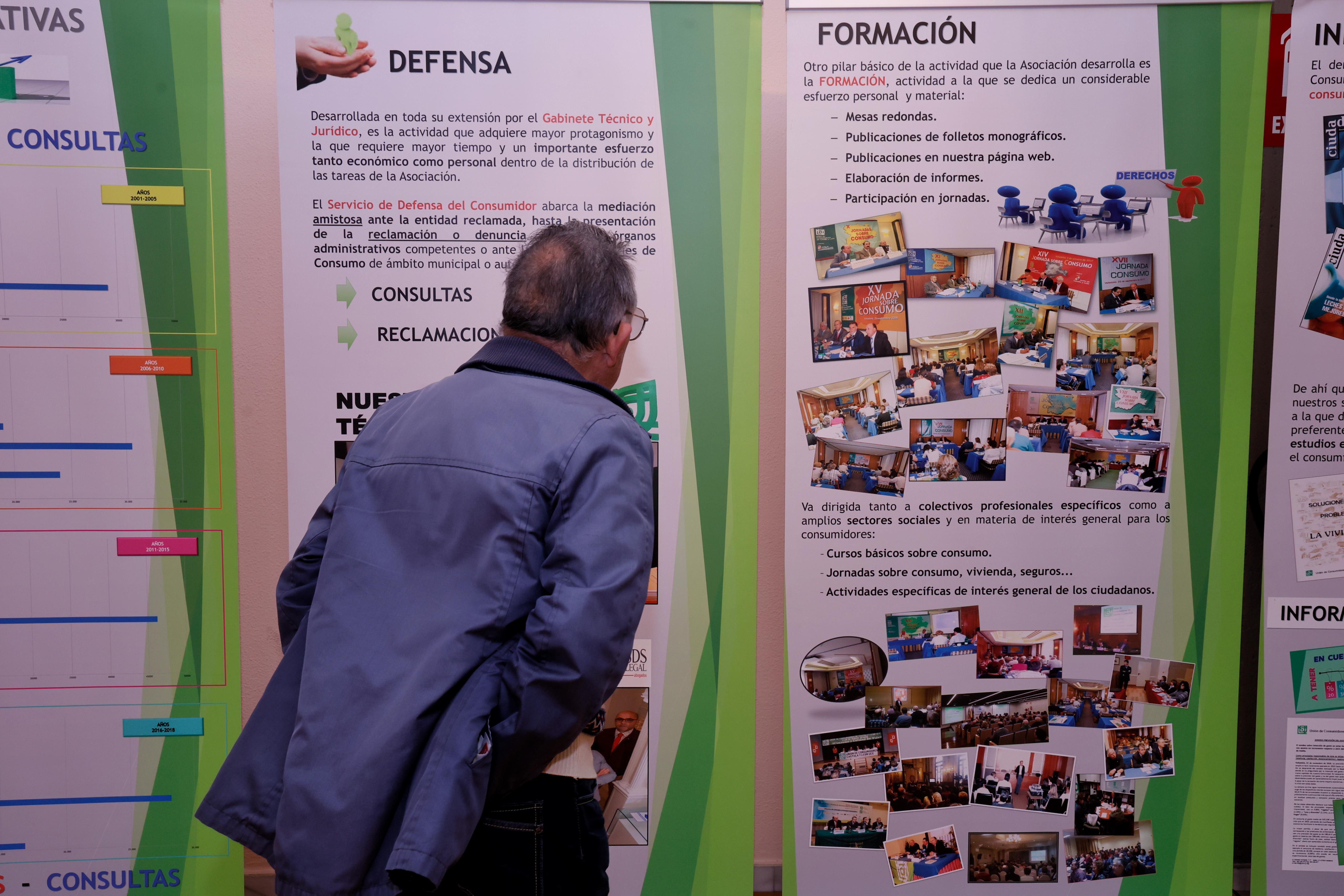 Se trata de una exposición que desde finales de 2020 ha ido recorriendo distintas ciudades de Castilla y León, y en la que a través de una serie de paneles se refleja la historia de la asociación y de sus actividades, y se puede constatar también cómo ha ido evolucionando el campo del consumo en la Comunidad Autónoma.