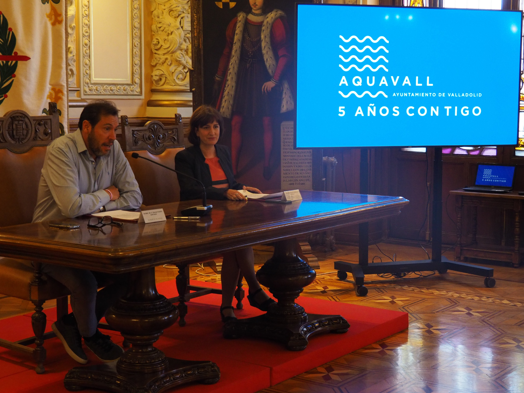 El alcalde de Valladolid, Óscar Puente, y la concejala de Medio Ambiente y presidenta del consejo de Administración de Aquavall, María Sánchez, han destacado la mejora "sustancial" en la gestión del agua de Valladolid coincidiendo con el quinto aniversario de la remunicipalización y que han permitido invertir 46 millones de euros en la mejora del servicio público, con las tarifas congeladas durante todo este tiempo.
