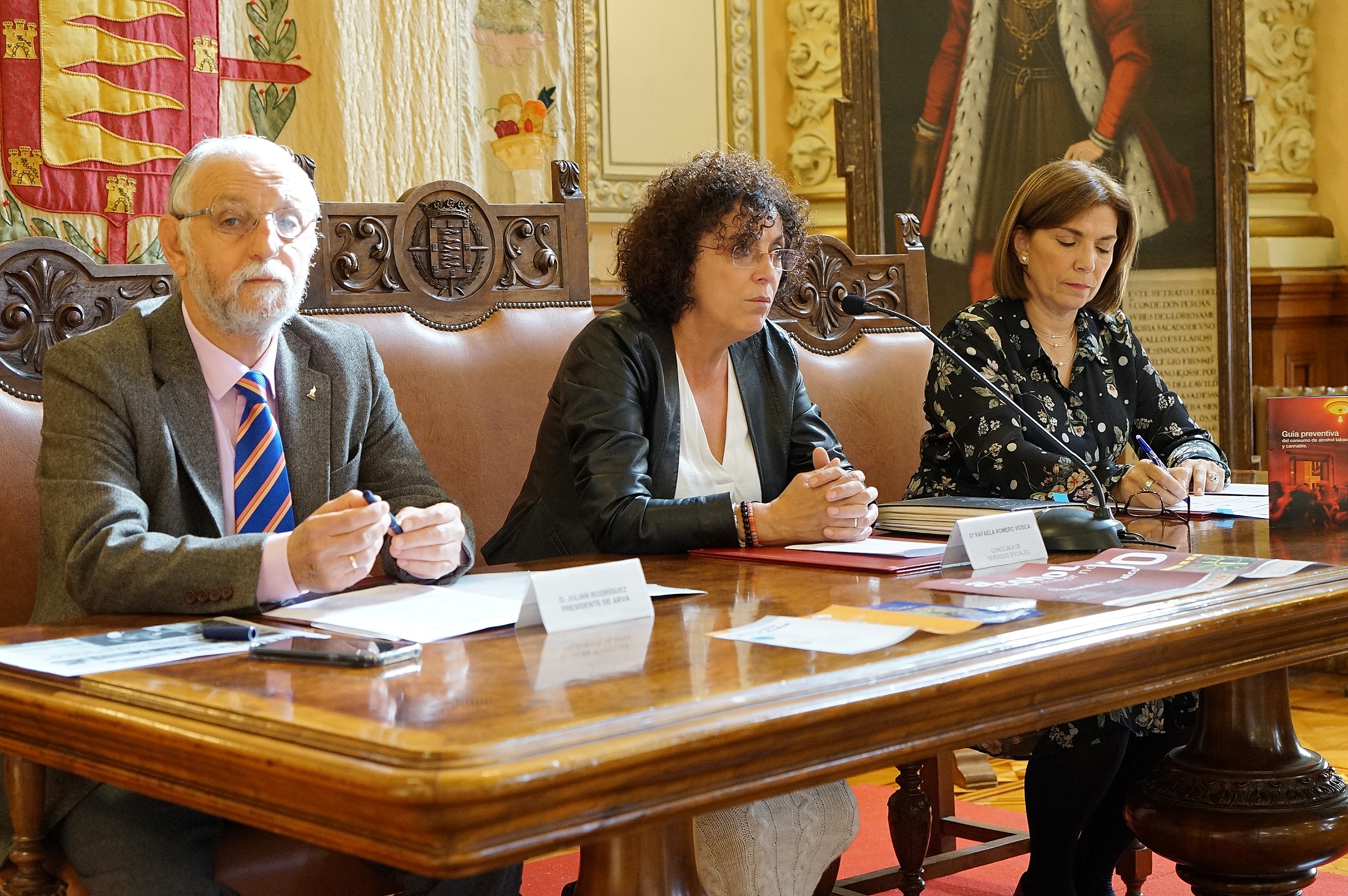 La concejala de Servicios Sociales, Rafaela Romero, el presidente de ARVA, Julián Rodríguez, y la vicerrectora de Estudiantes de la UVA, Carmen Sobaler, han presentado, en el salón de recepciones, la campaña de prevención, que con motivo del Día Mundial sin Alcohol y bajo el lema "El Alcohol no es un juego", se está difundiendo en varios campus universitarios.