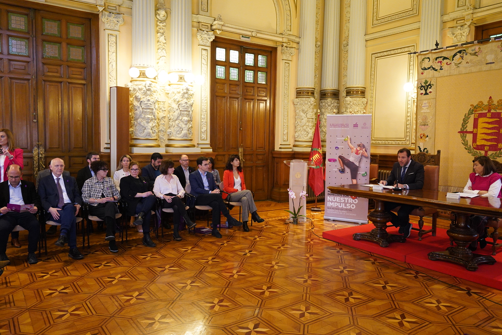 El Ayuntamiento de Valladolid ha celebrado el acto institucional para conmemorar el Día Internacional de la Mujer. La campaña de este año lleva el lema "NUESTROS DERECHOS SON NUESTRO IMPULSO: Que nadie nos los limite. Somos los pilares necesarios de la sociedad".